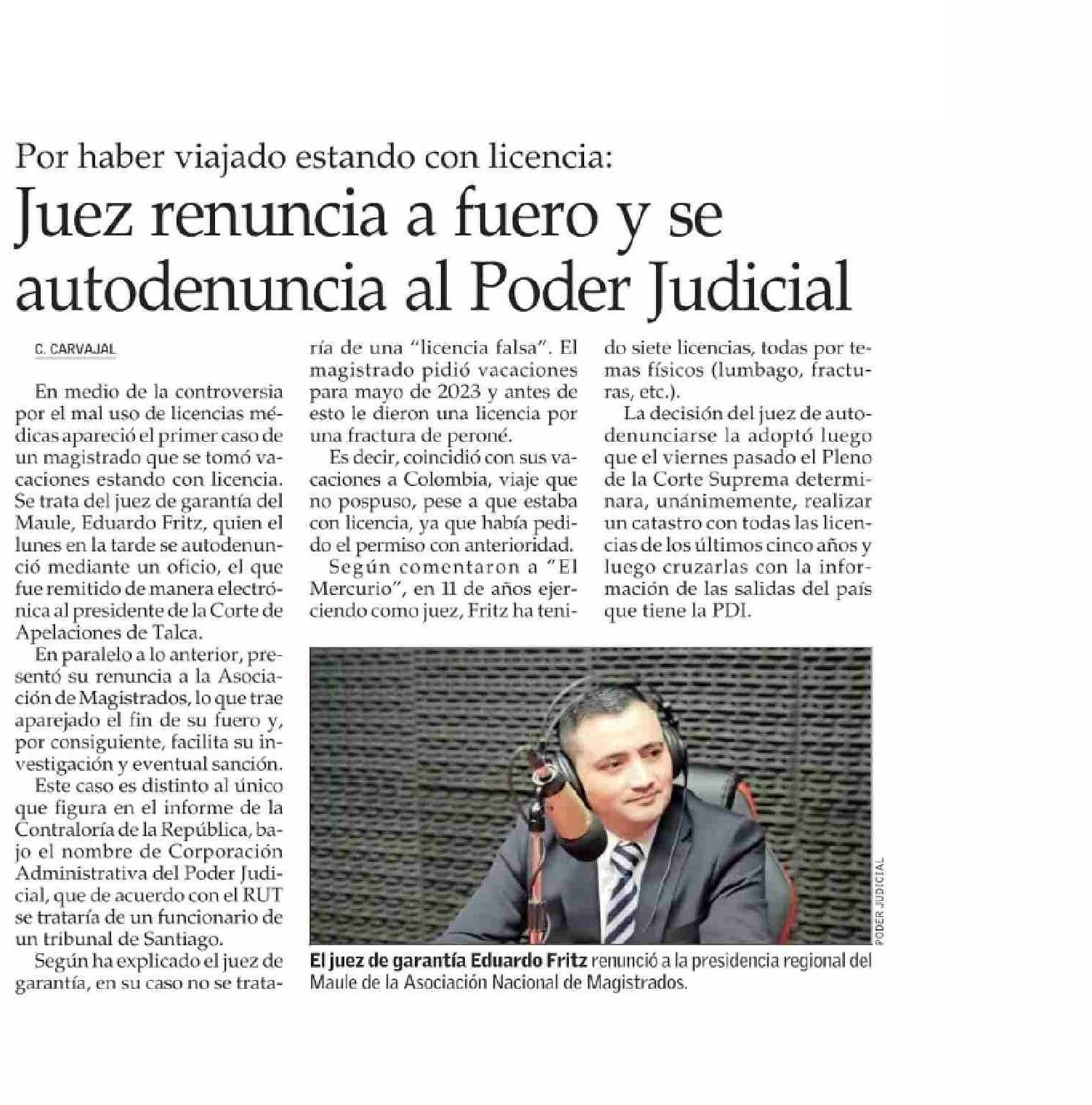 Título: Juez renuncia a fuero y se autodenuncia al Poder Judicial