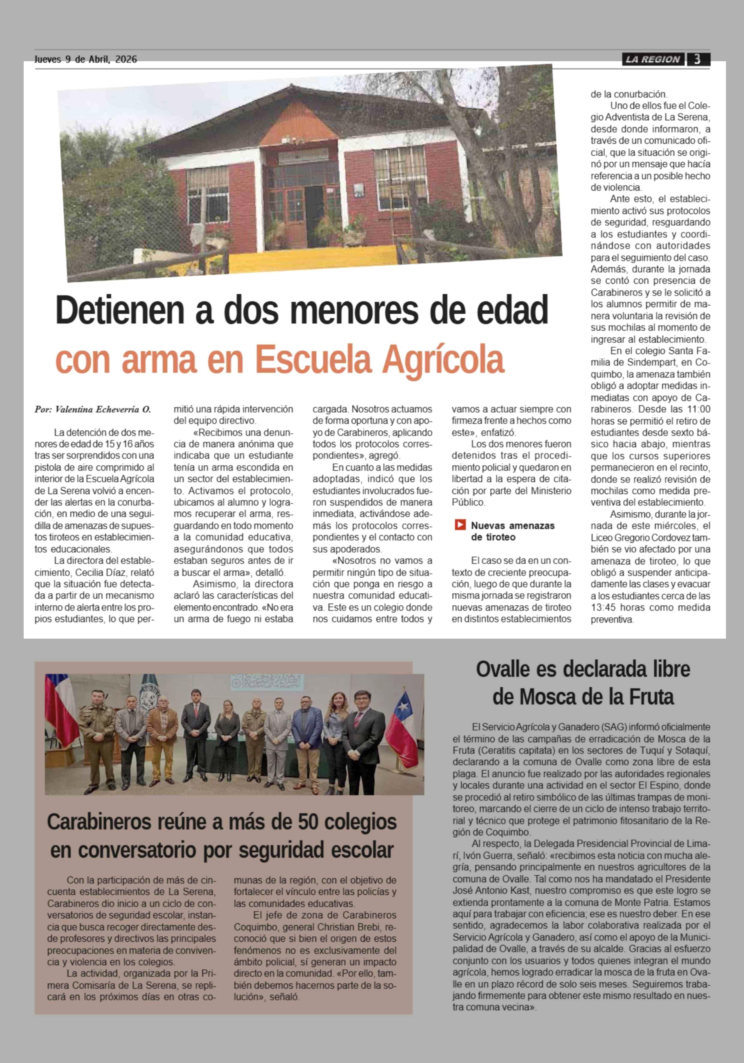 | Fecha: | 09-04-2026 | Sector: | Noticia general | Región: | Región de Coquimbo |