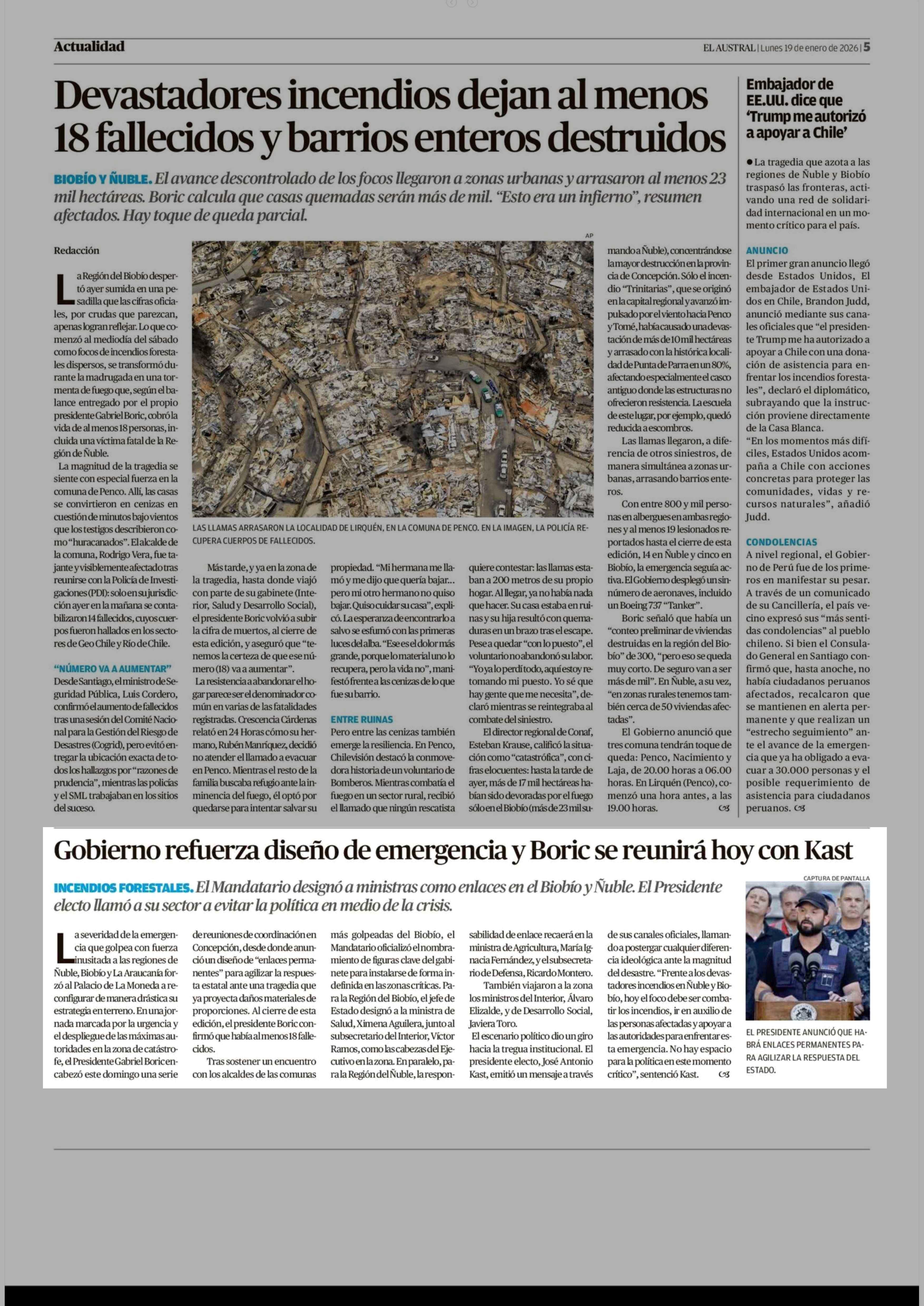Fecha: 19-01-2026 Sector: Noticia general Región: Región de la Araucanía