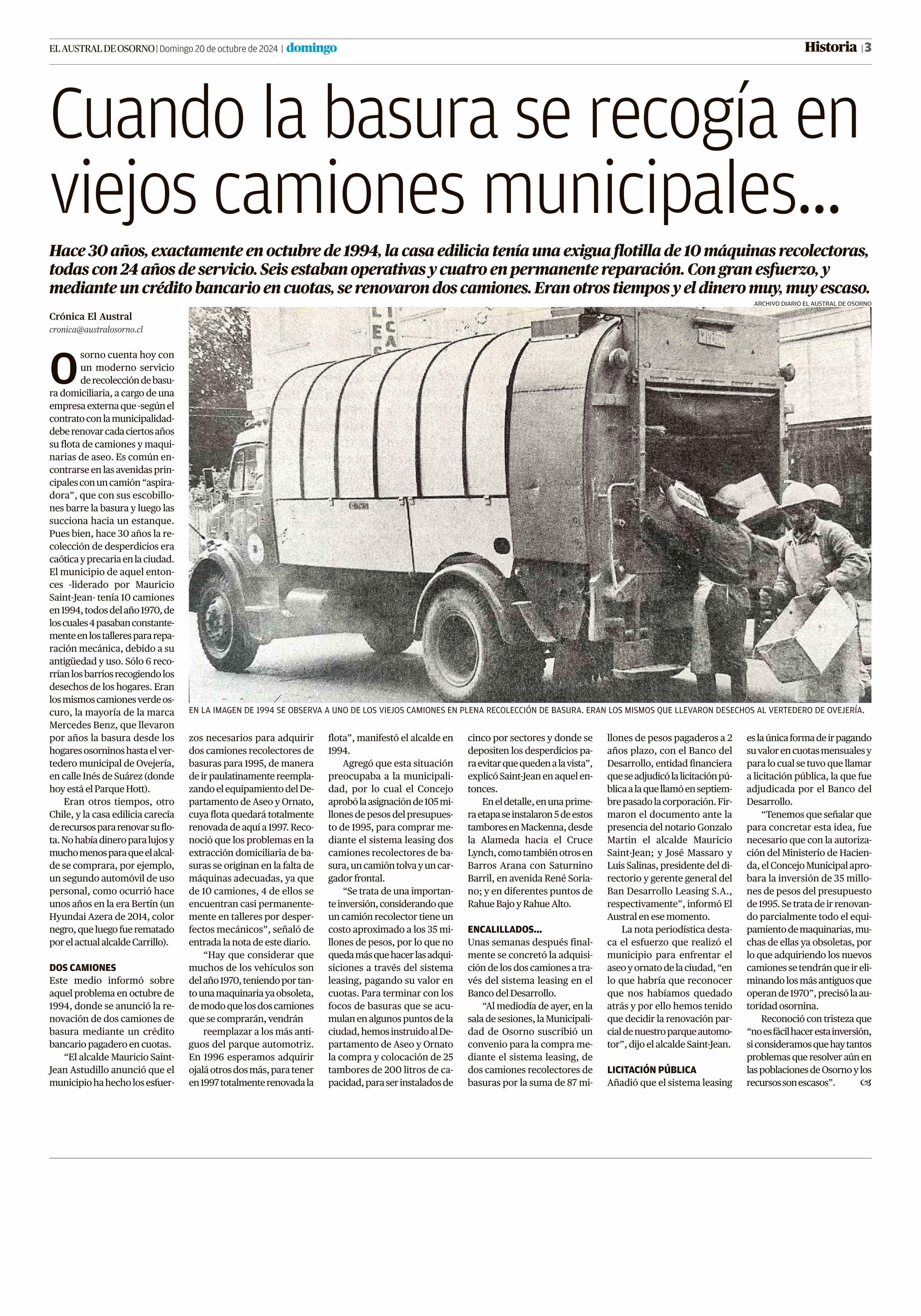 Cuando la basura se recogía en viejos camiones municipales... 20-10-2024 El Austral de Osorno |
