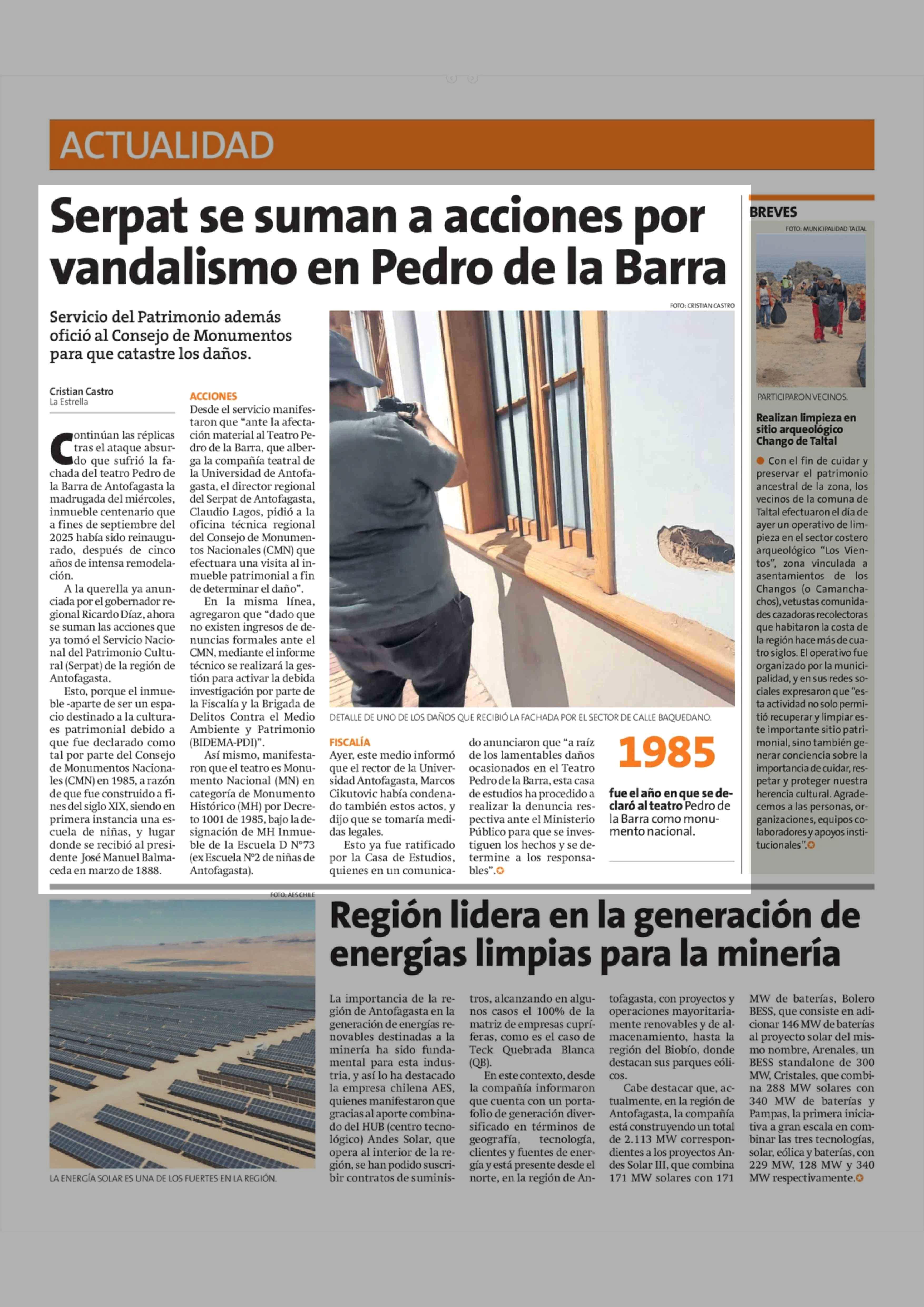 Serpat se suman a acciones por vandalismo en Pedro de la Barra 13-02-2026 La Estrella de Antofagasta |