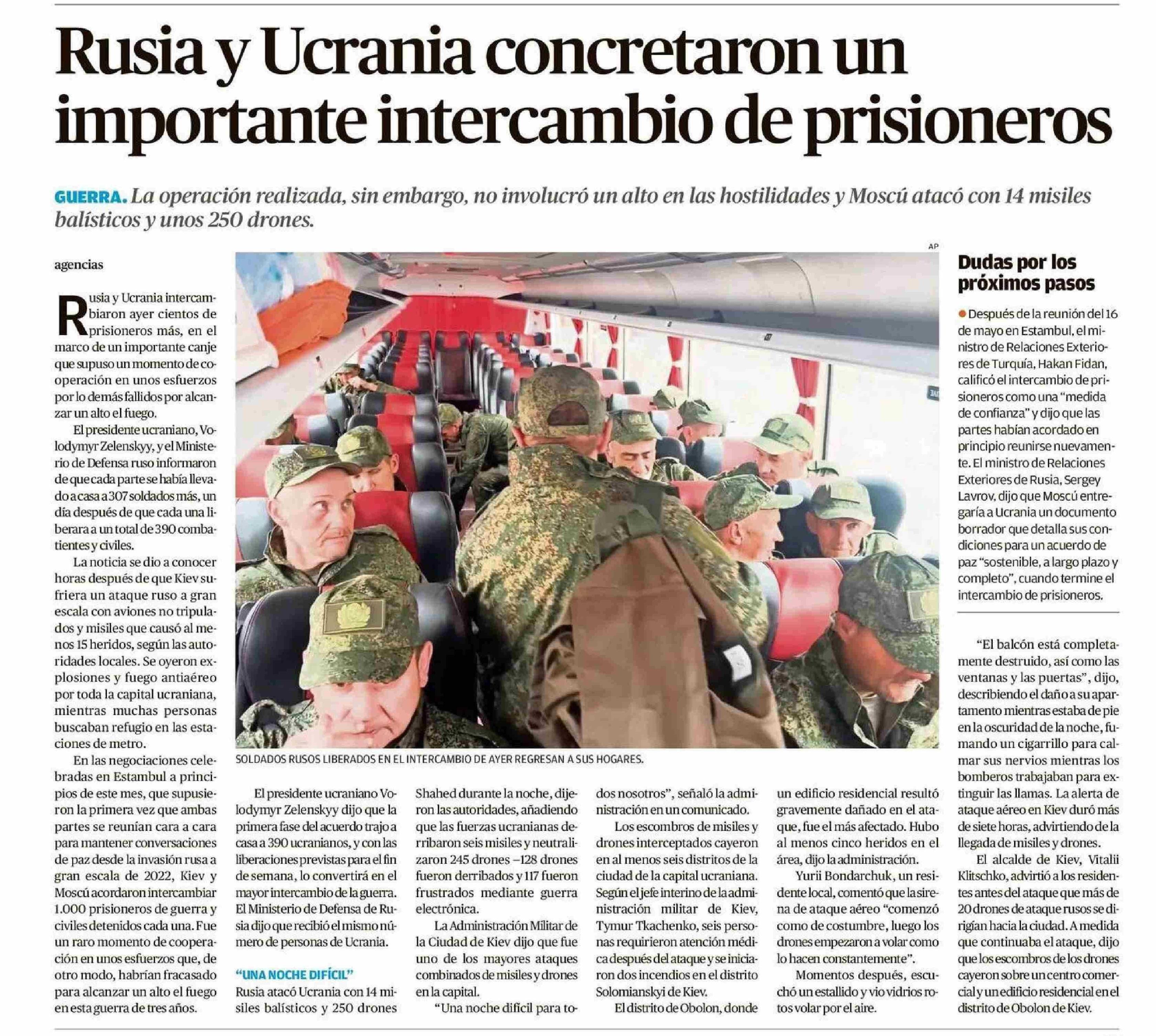 Rusia y Ucrania concretaron un importante intercambio de prisioneros 25-05-2025 Diario Austral Región de Los Ríos |