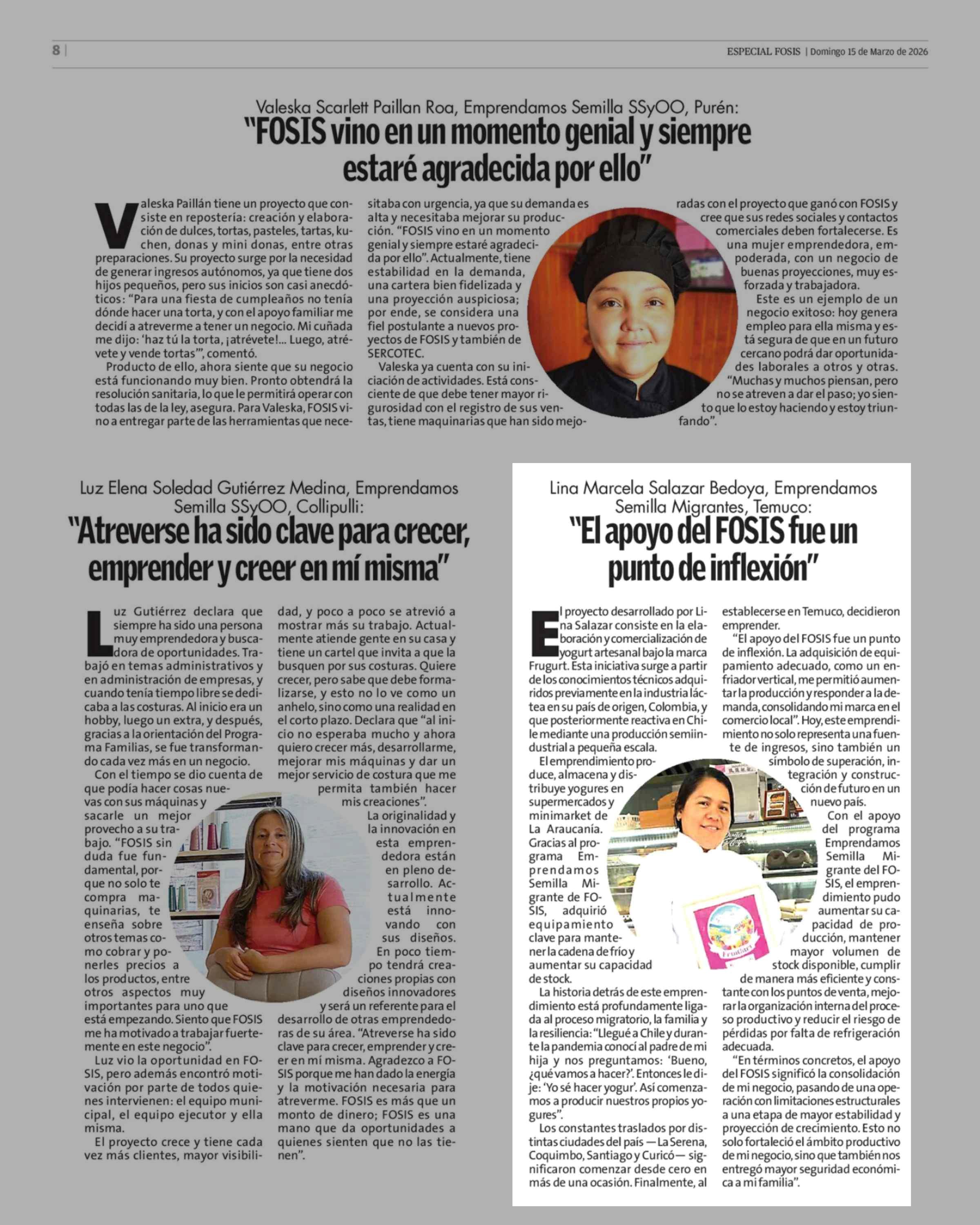 "El apoyo del FOSIS fue un punto de inflexión" 15-03-2026 El Austral de la Araucanía |