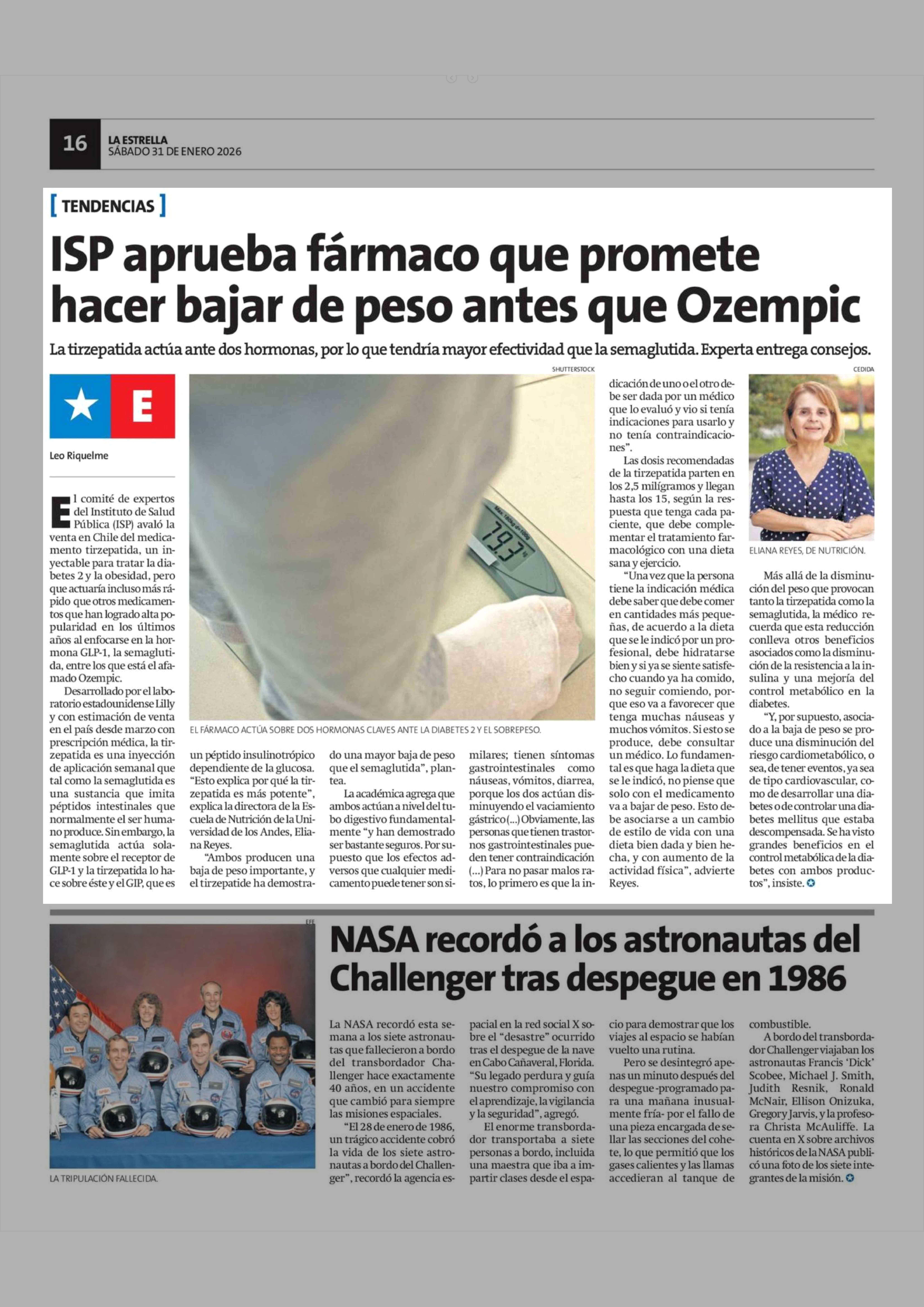 ISP aprueba fármaco que promete hacer bajar de peso antes que Ozempic 31-01-2026 La Estrella de Antofagasta |