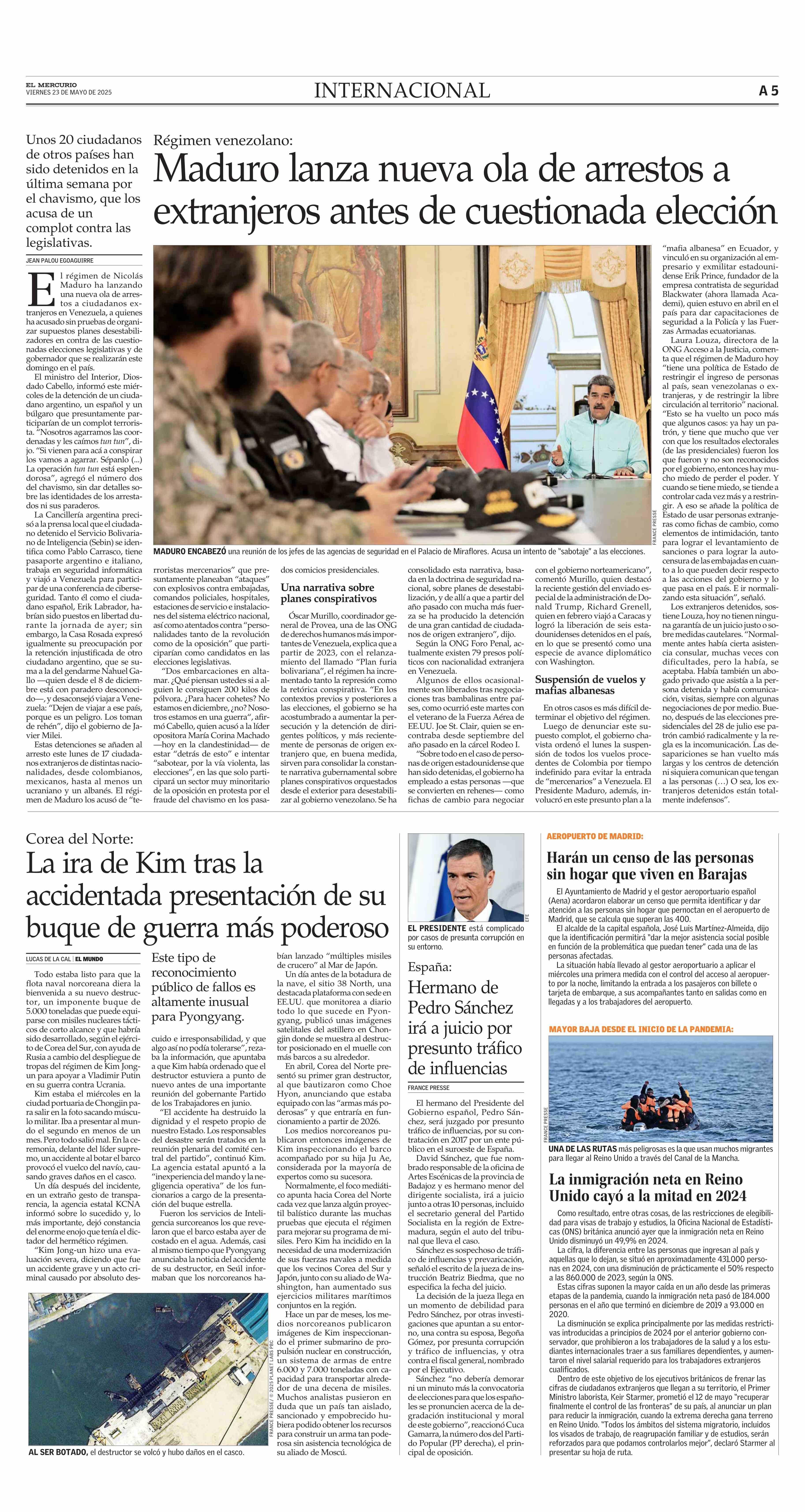 Maduro lanza nueva ola de arrestos a extranjeros antes de cuestionada elección 23-05-2025 El Mercurio |