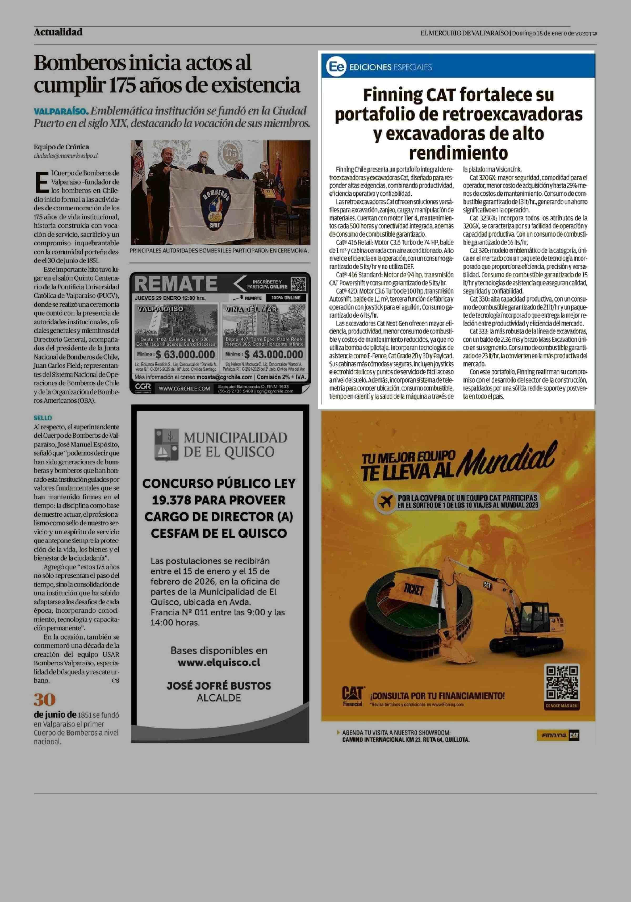 Finning CAT fortalece su portafolio de retroexcavadoras y excavadoras de alto rendimiento 18-01-2026 El Mercurio de Valparaíso |