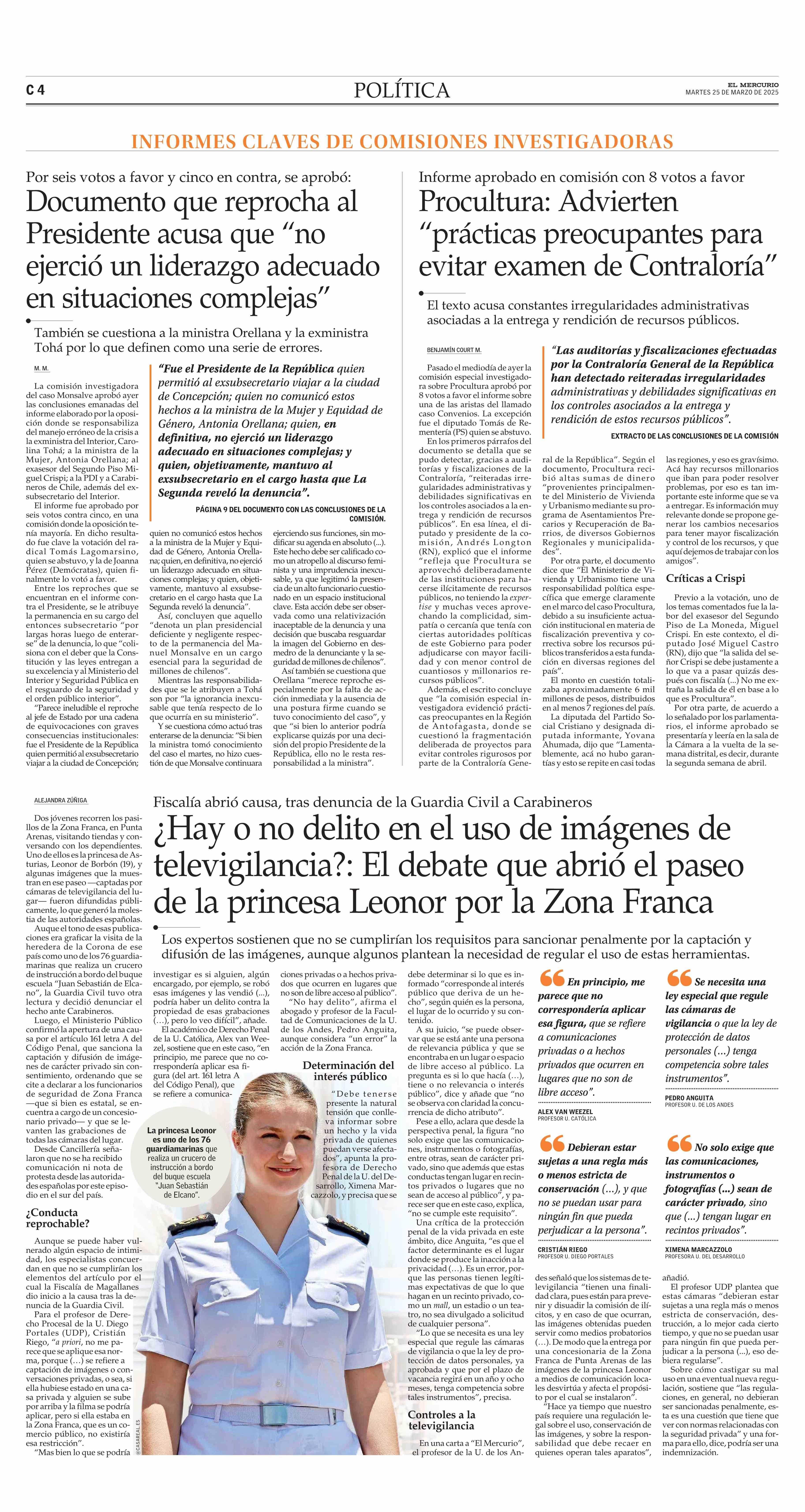 ¿Hay o no delito en el uso de imágenes de televigilancia?: El debate que abrió el paseo de la princesa Leonor por la Zona Franca 25-03-2025 El Mercurio |