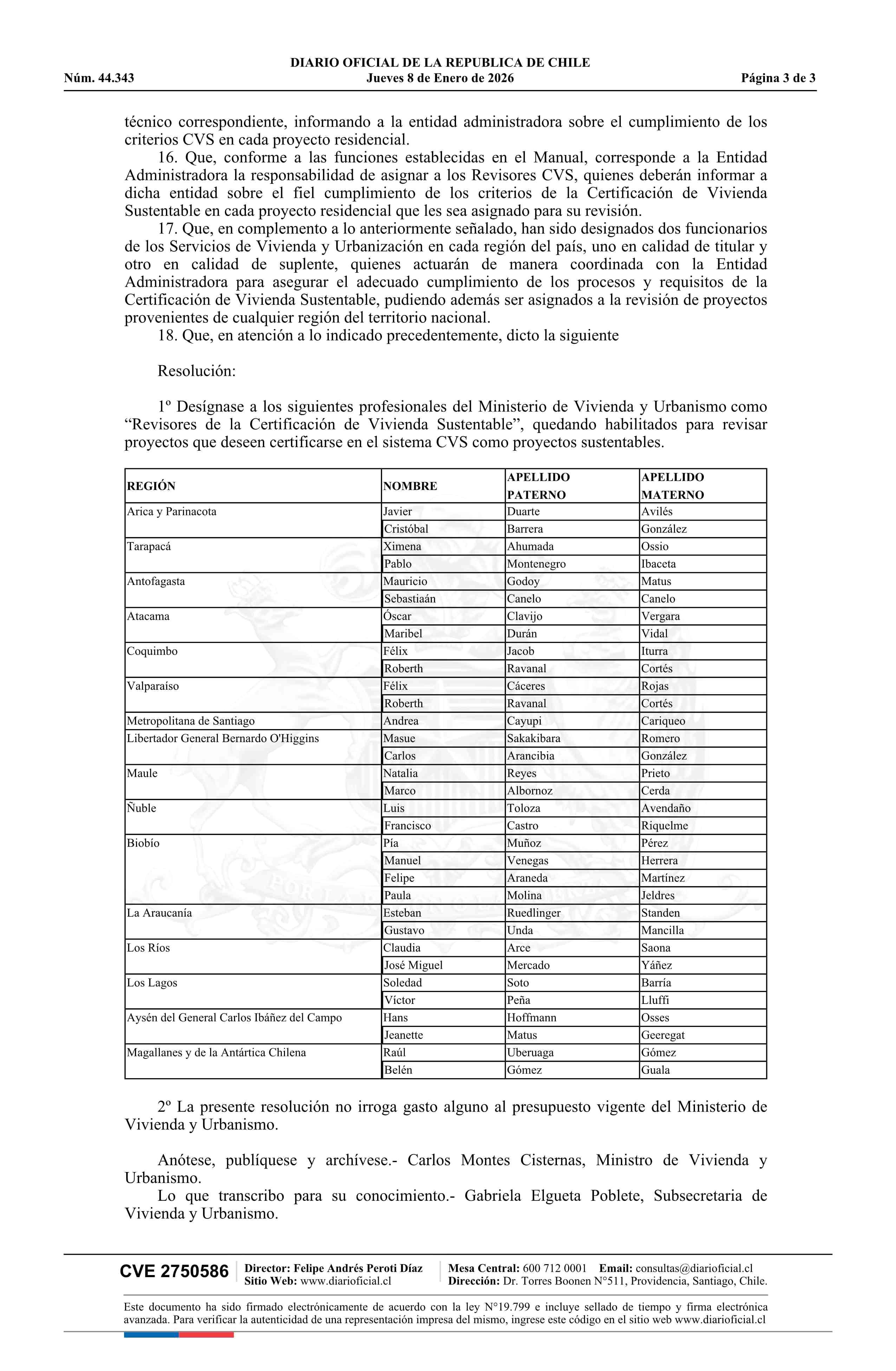 | Título: | Resolución exenta número 2.019, de 2025.- Designa a profesionales como Revisores de la Certificación de Vivienda Sustentable |