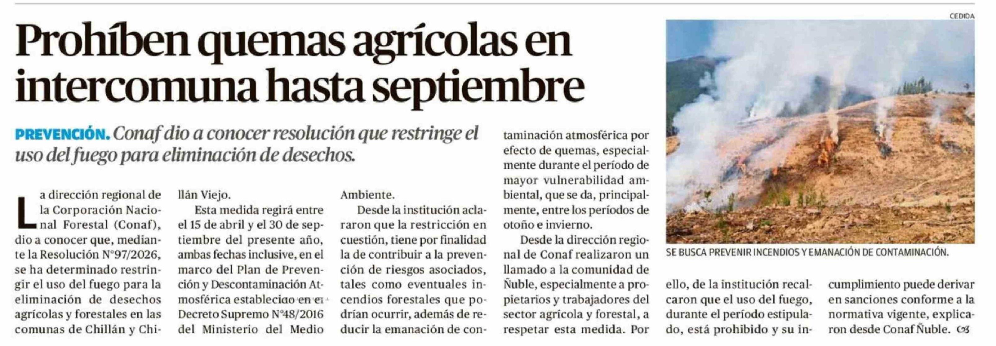 Título: Prohíben quemas agrícolas en intercomuna hasta septiembre