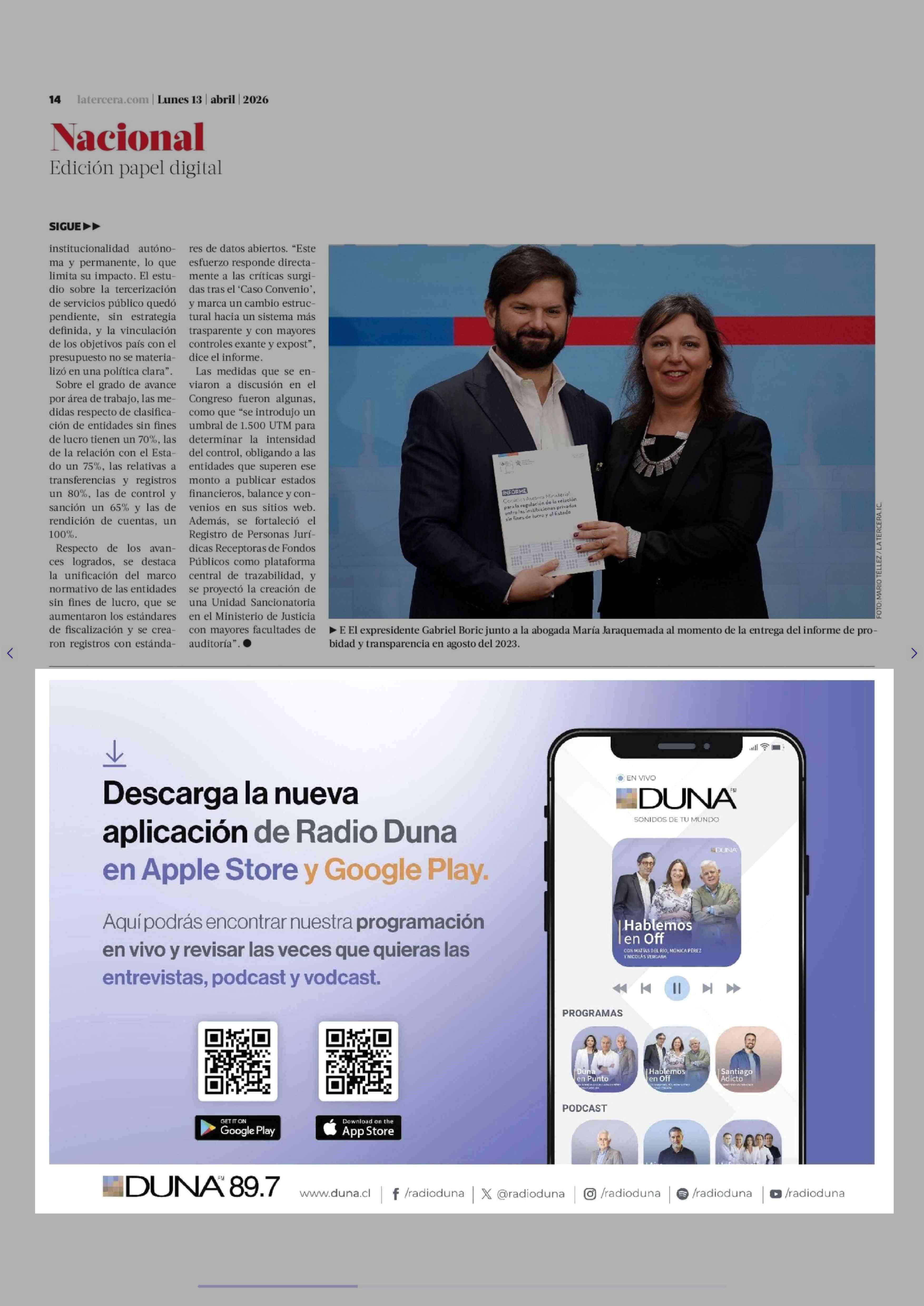 Aviso Radio: DUNA 13-04-2026 La Tercera |