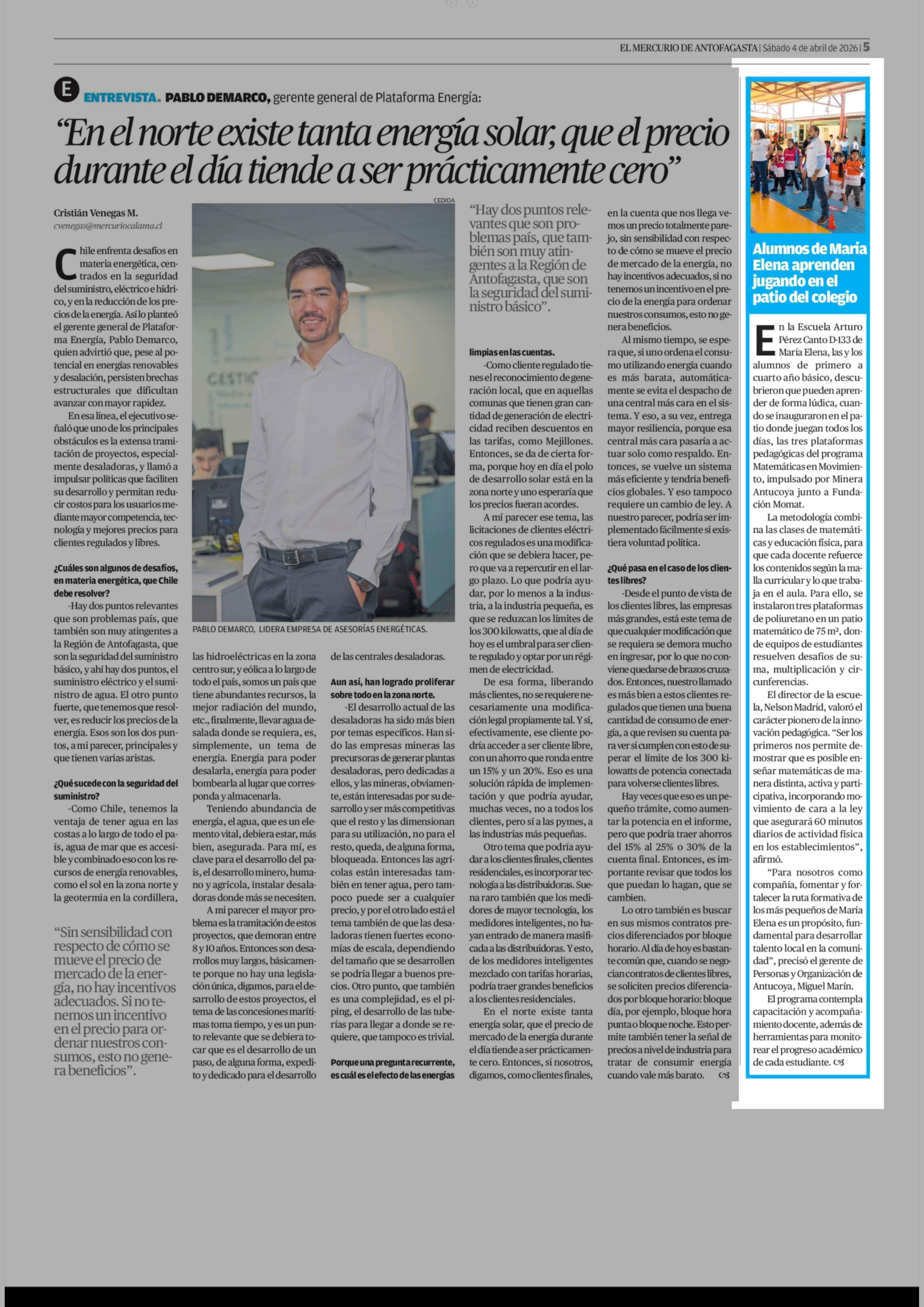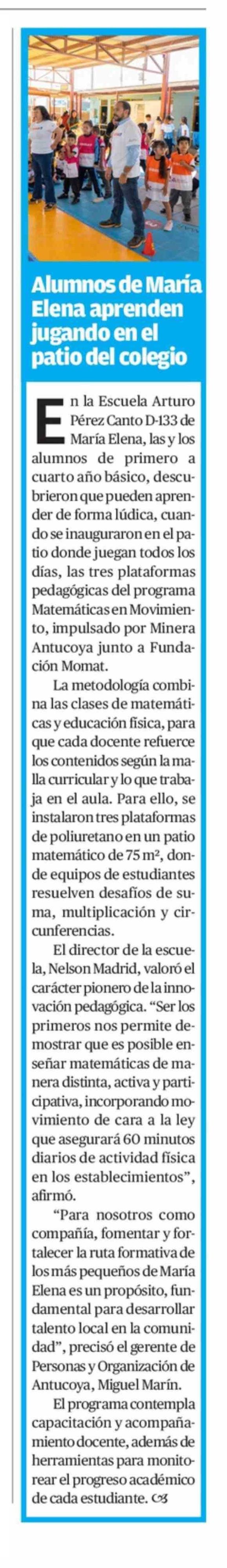 Alunmos de María Elena aprenden jugando en el patio del colegio 04-04-2026 El Mercurio de Antofagasta |