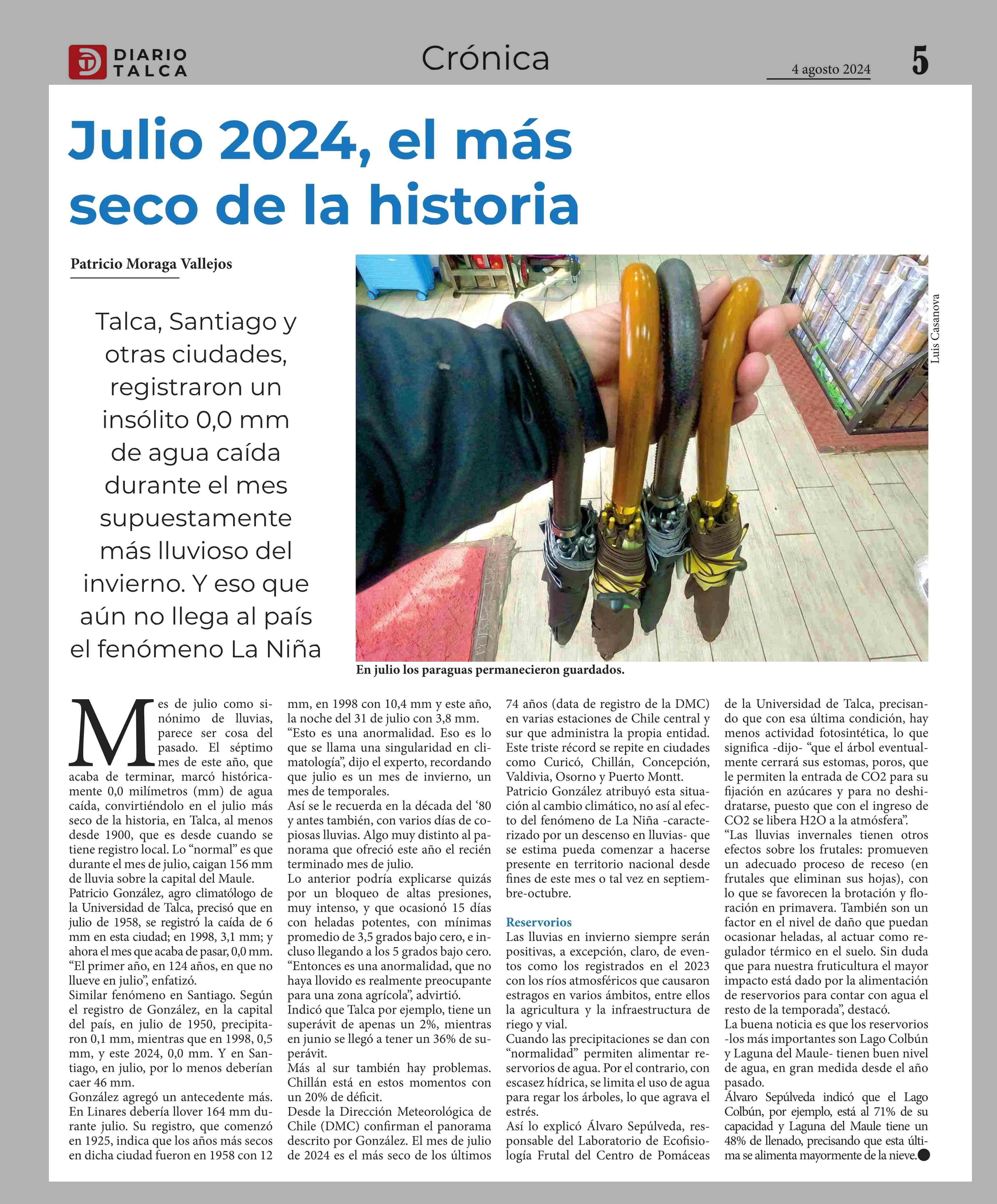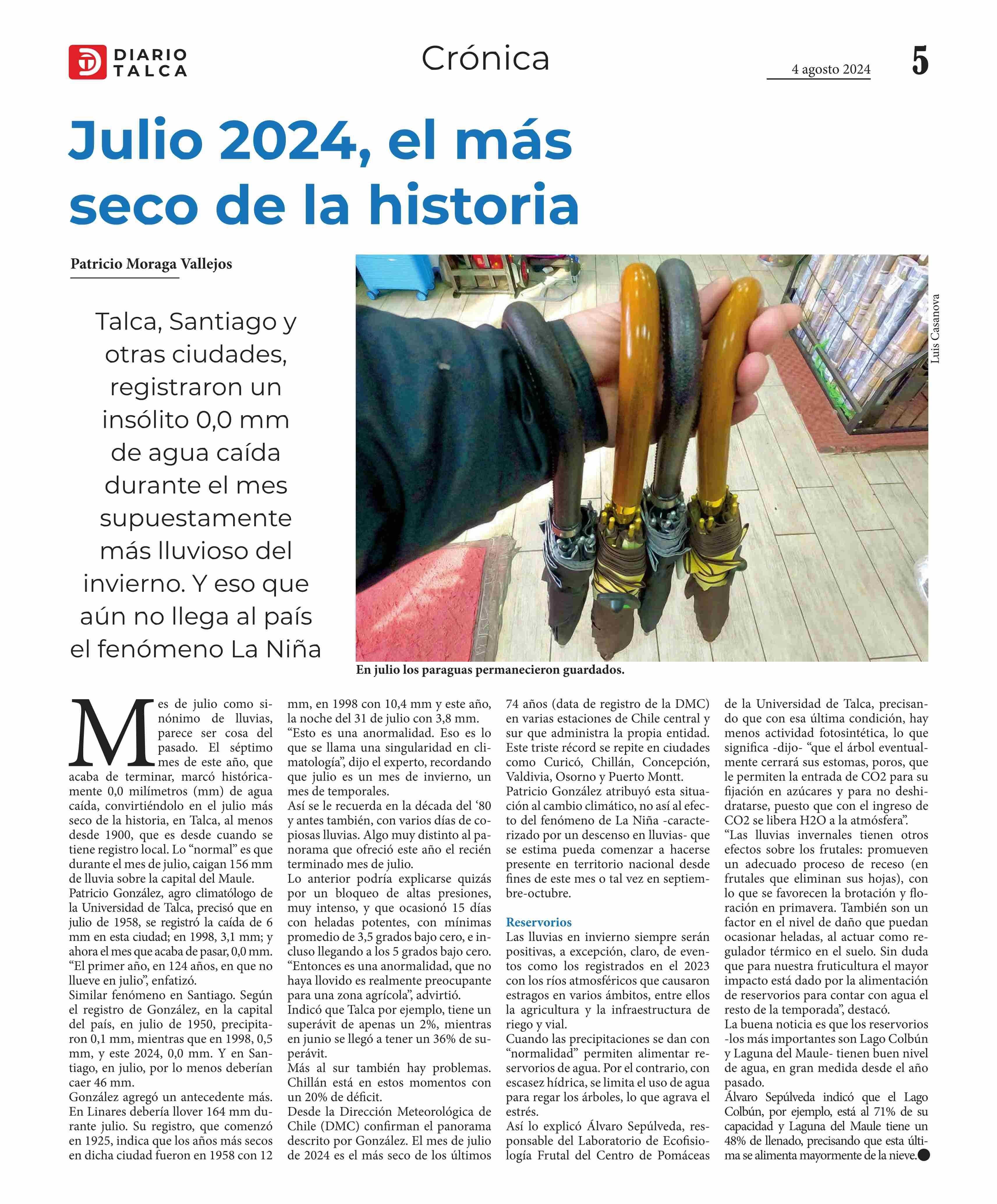 Julio 2024, el más seco de la historia 05-08-2024 Diario Talca |