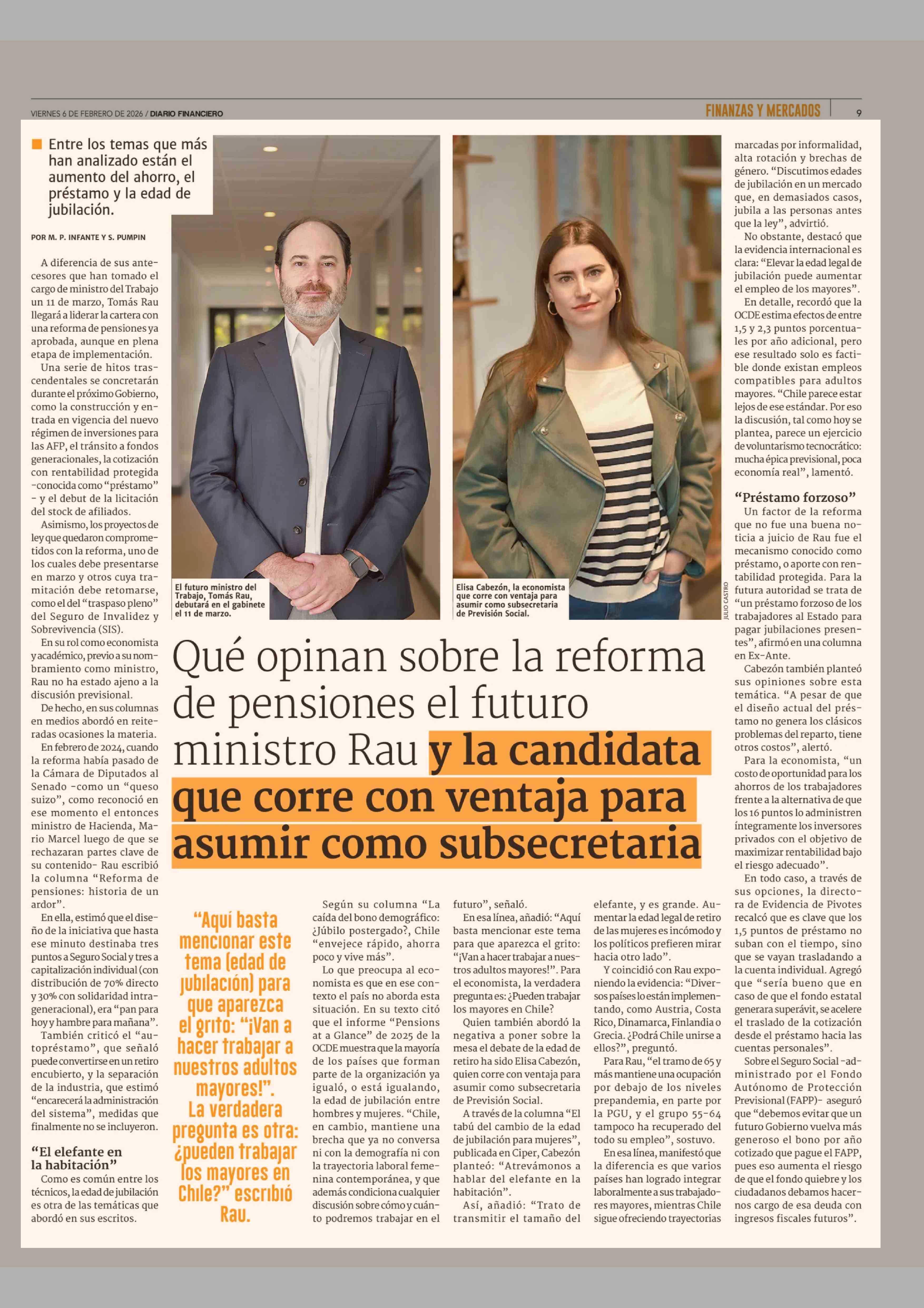 Título: Qué opinan sobre la reforma de pensiones el futuro ministro Rau y la candidata que corre con ventaja para asumir como subsecretaria