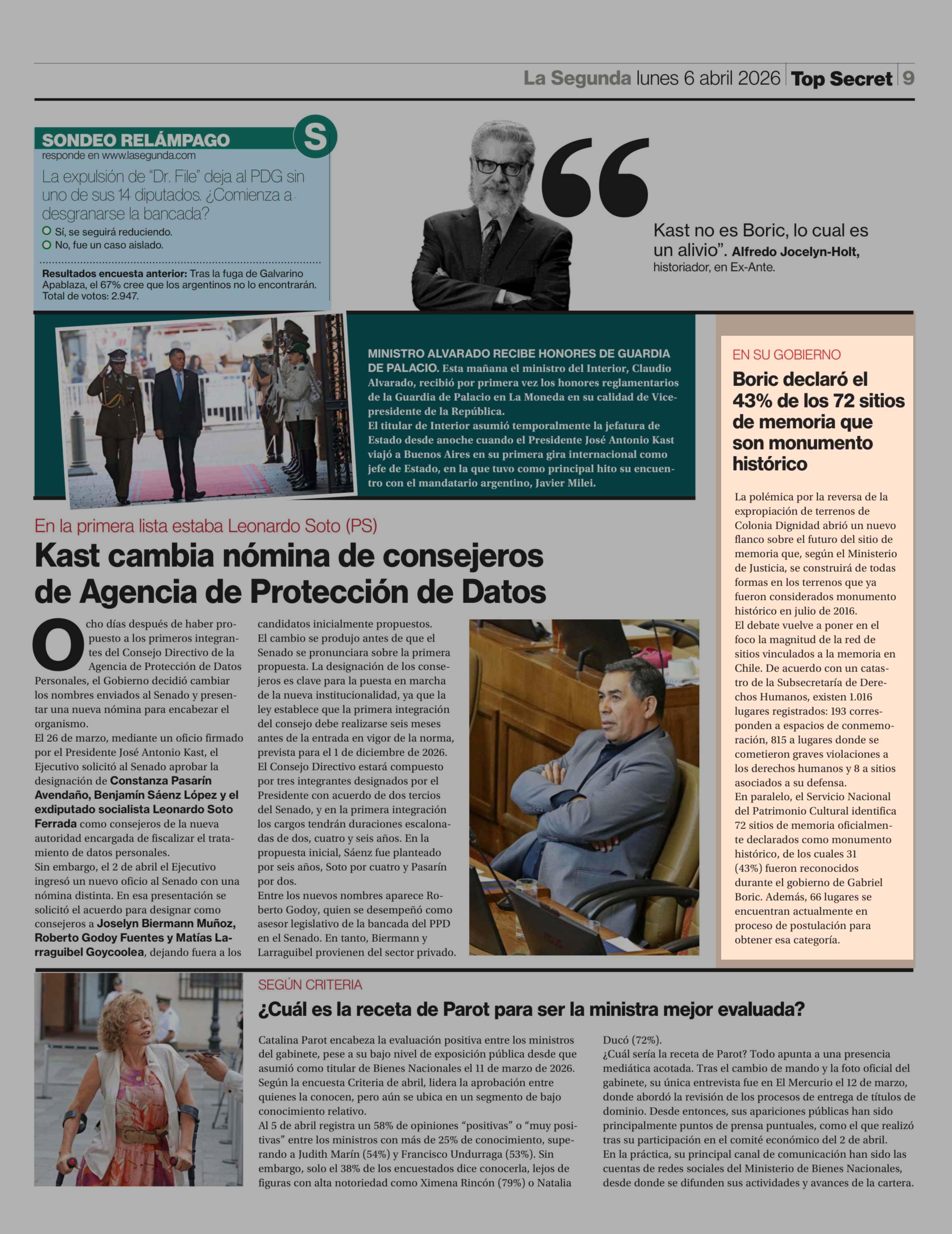 Boric declaró el 43% de los 72 sitios de memoria que son monumento histórico 06-04-2026 La Segunda |