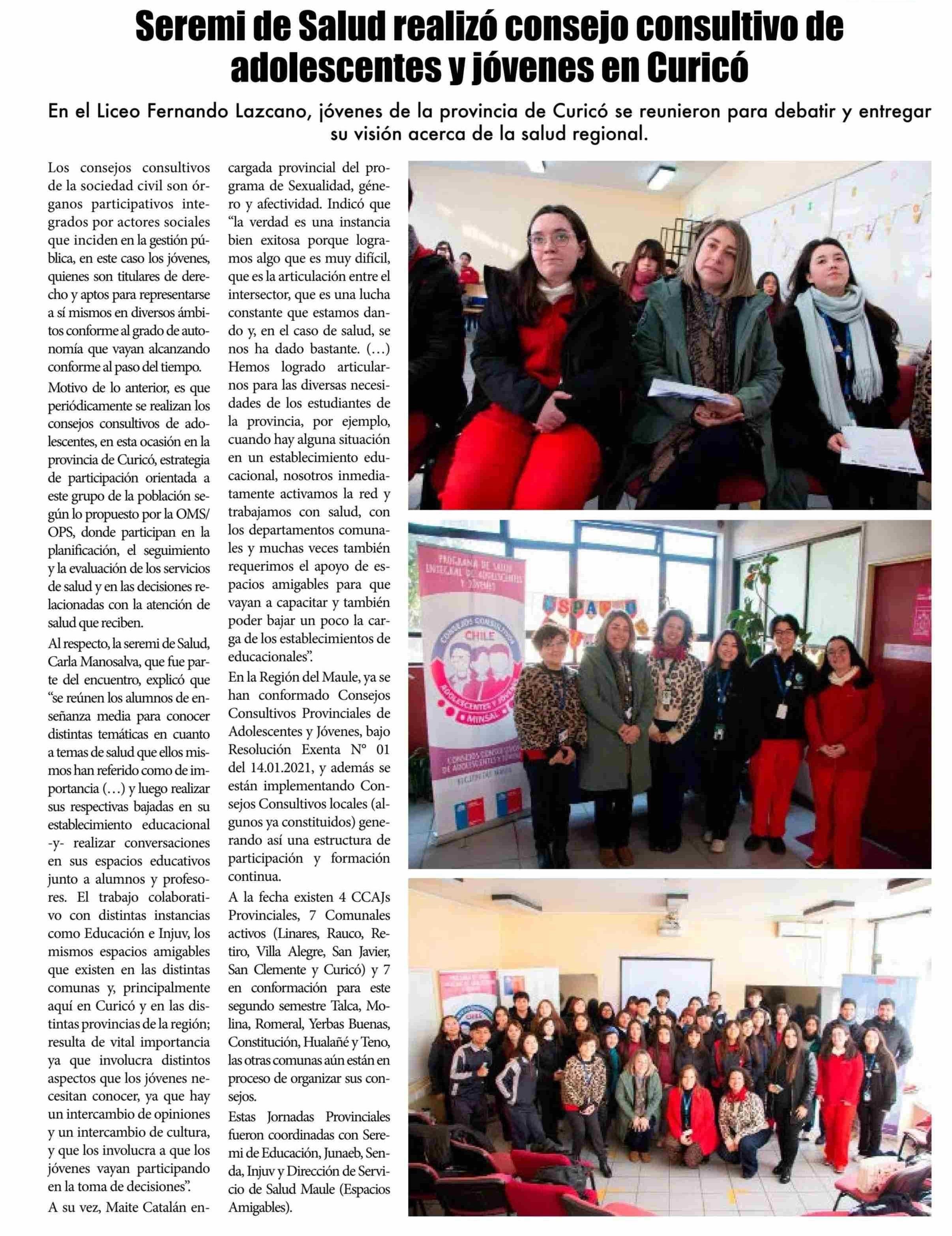 | Título: | Seremi de Salud realizó consejo consultivo de adolescentes y jóvenes en Curicó |