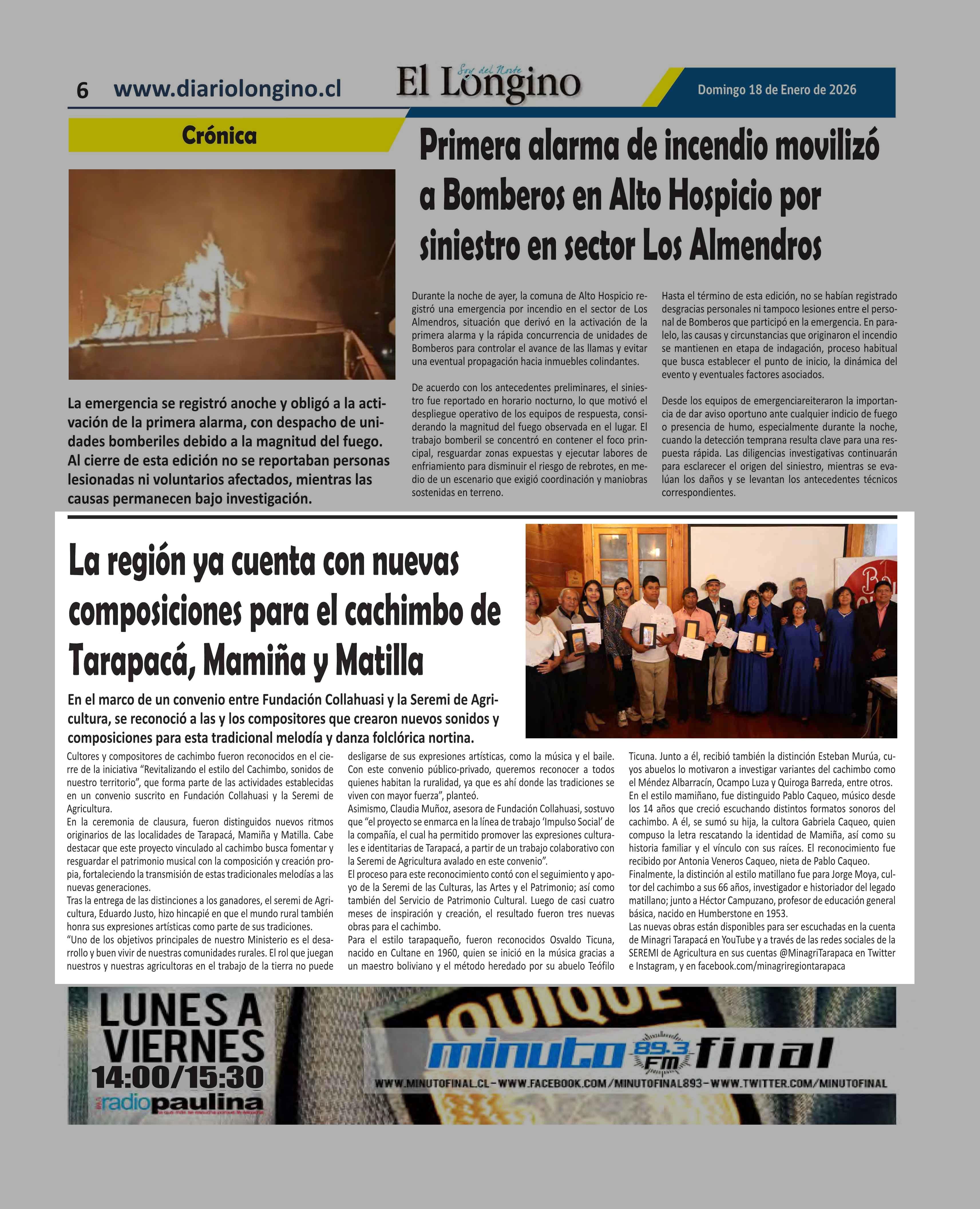 | Fecha: | 18-01-2026 | Sector: | Noticia general | Región: | Región de Tarapacá |