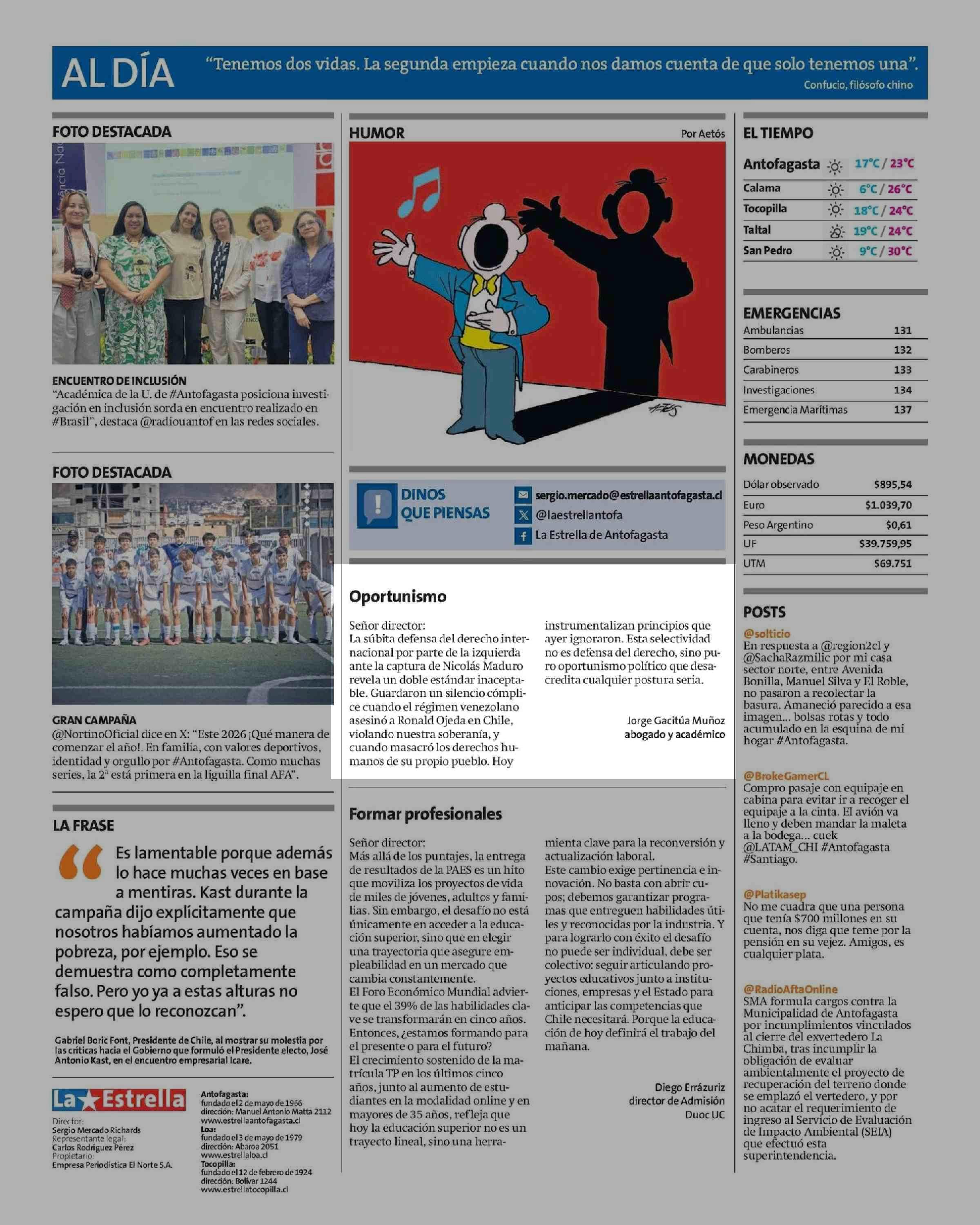 CARTAS: Oportunismo 10-01-2026 La Estrella de Antofagasta |