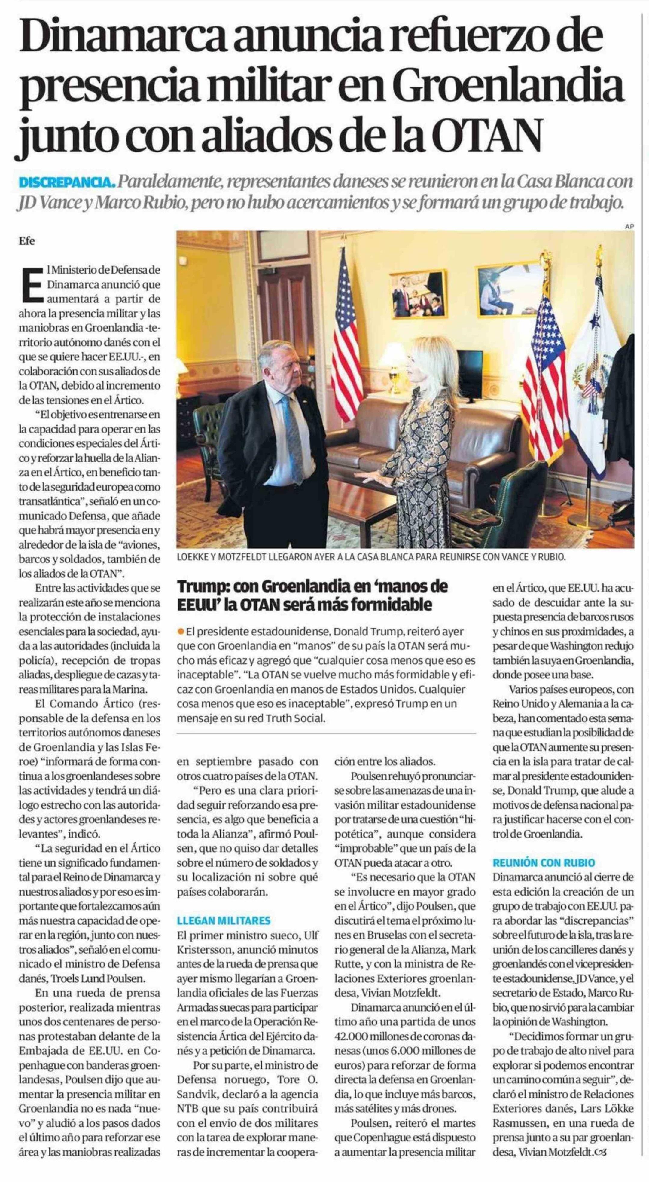 Título: Dinamarca anuncia refuerzo de presencia militar en Groenlandia junto con aliados de la OTAN