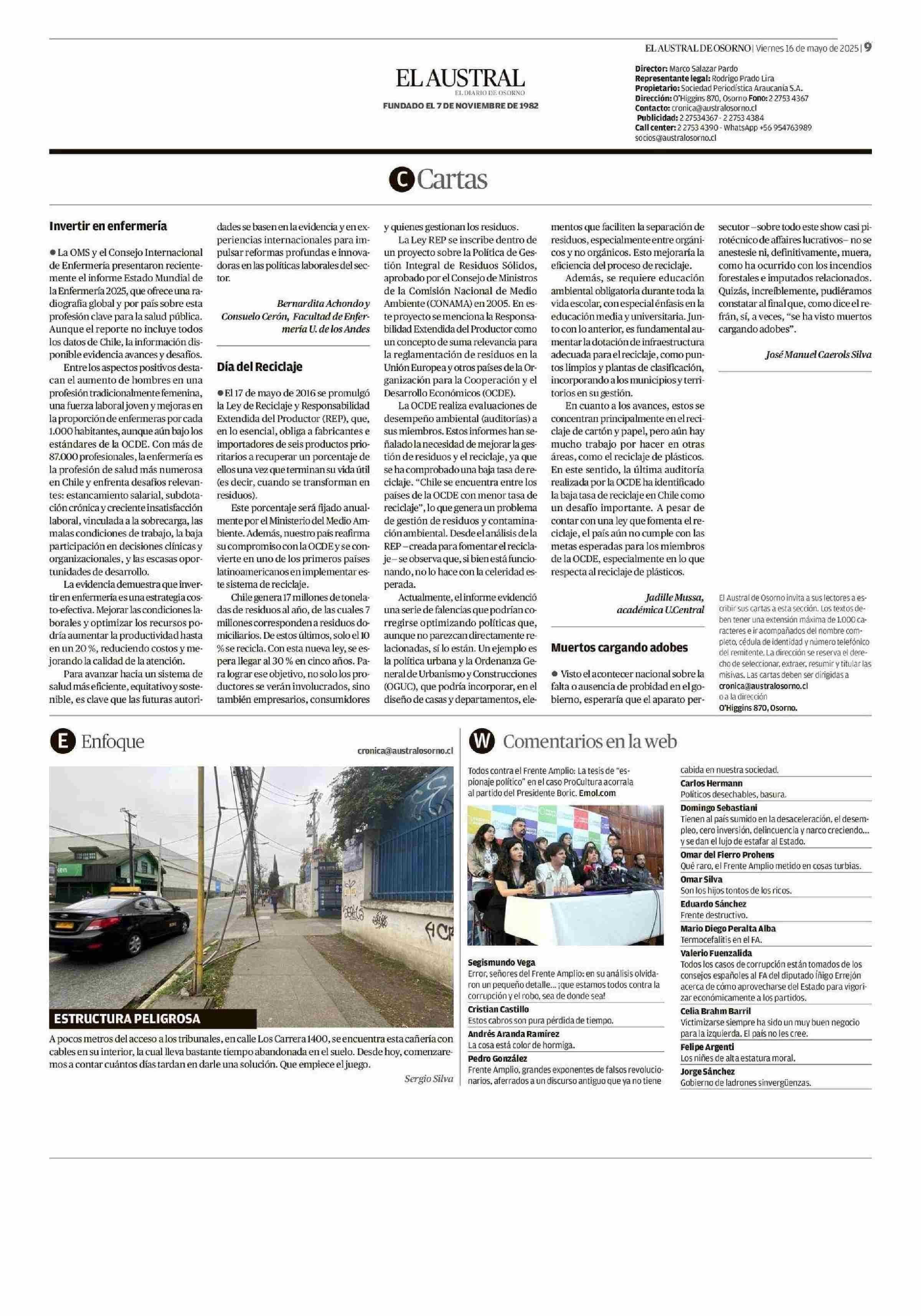 Invertir en enfermería 16-05-2025 El Austral de Osorno |