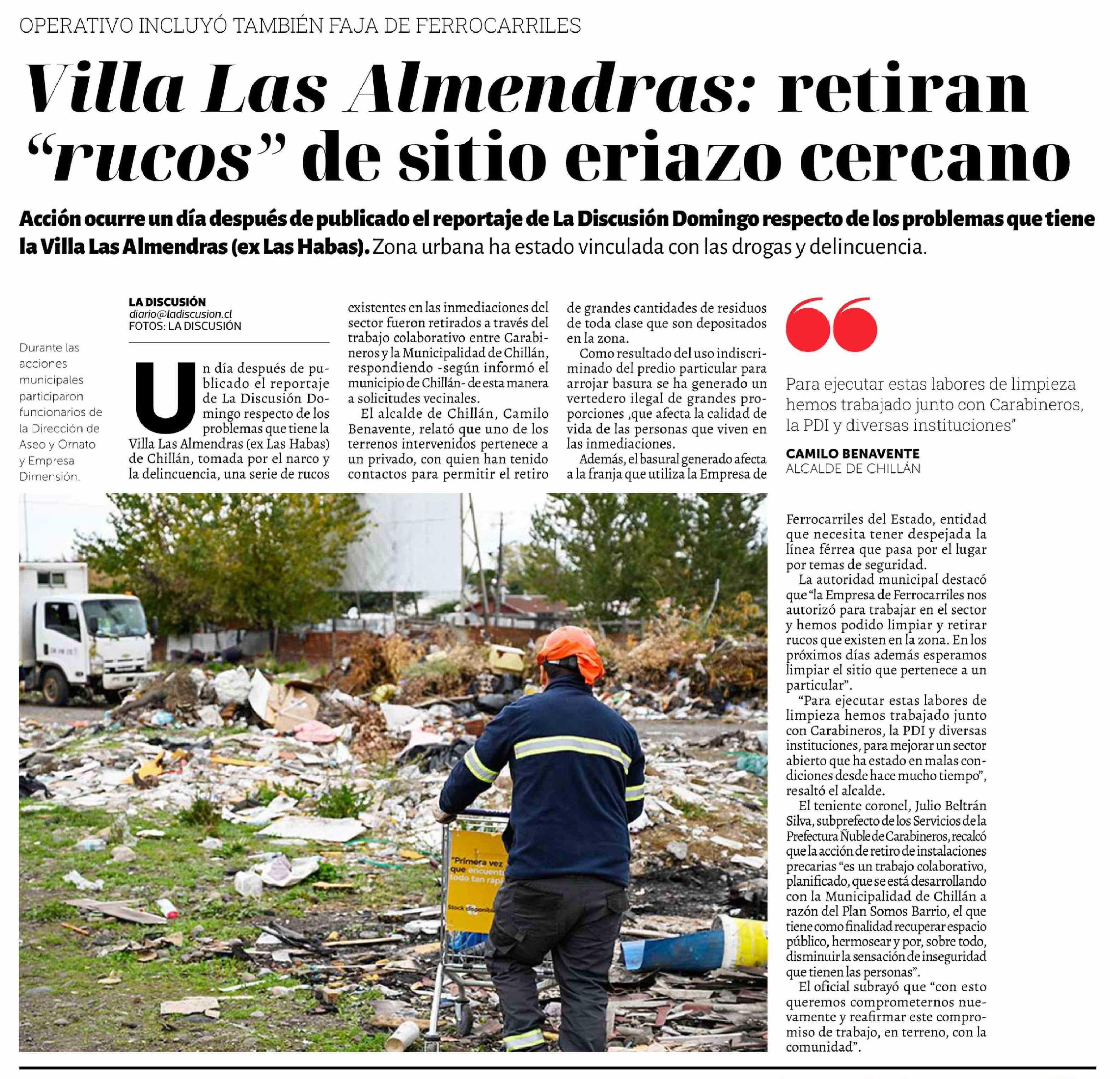 Villa Las Almendras: retiran "rucos" de sitio eriazo cercano 21-04-2026 La Discusión |