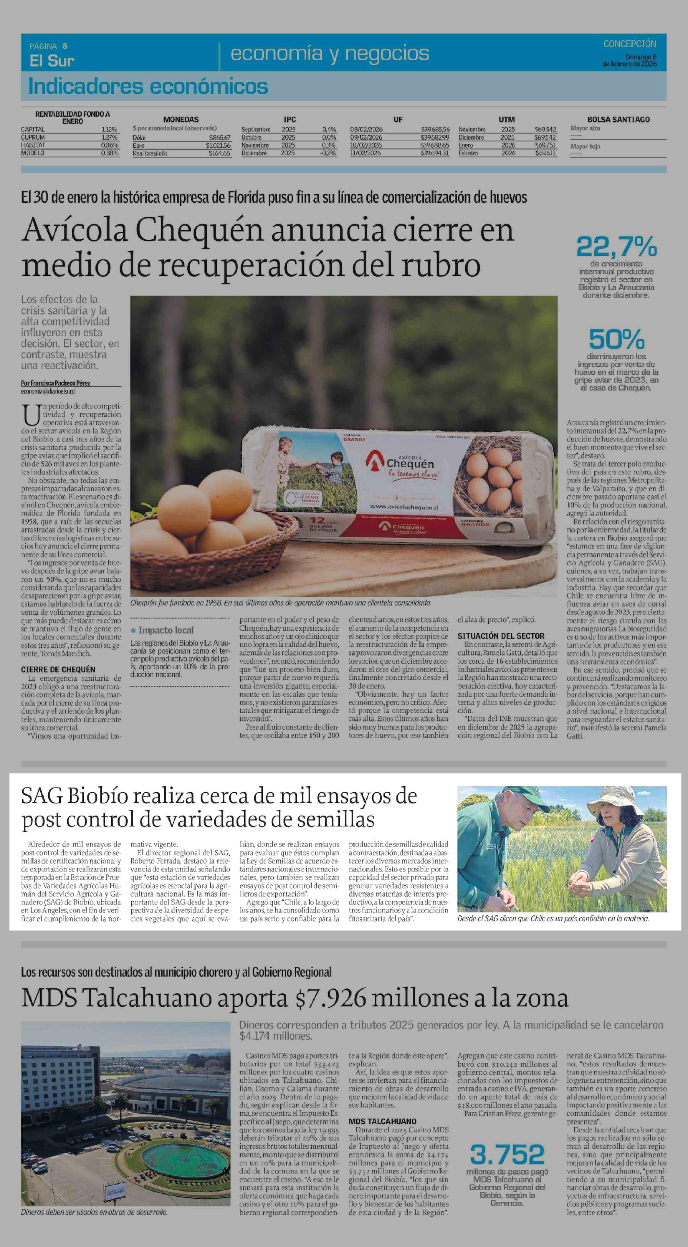 SAG Biobío realiza cerca de mil ensayos de post control de variedades de semillas 08-02-2026 El Sur |