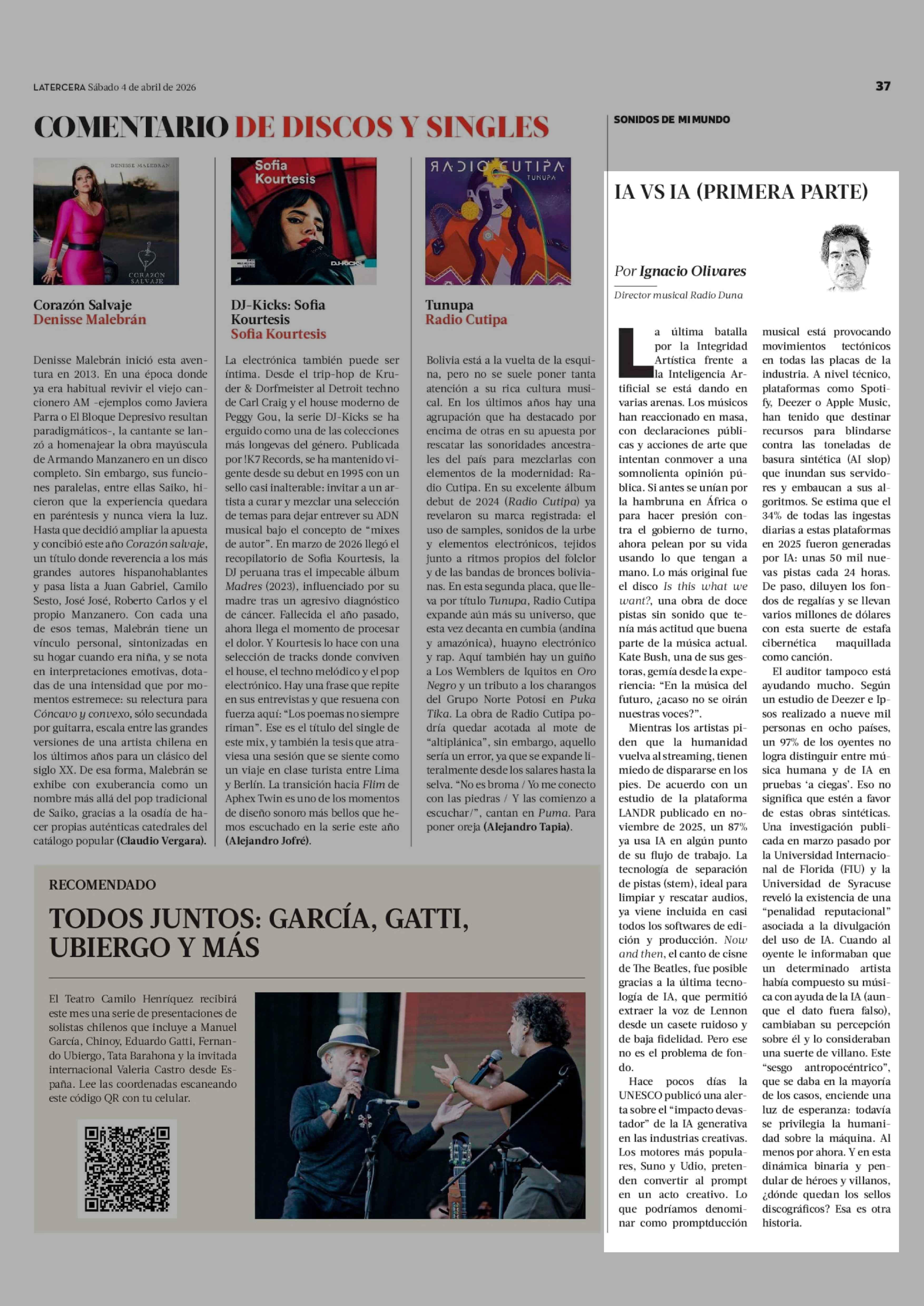 Columnas de Opinión: IAVSIA (PRIMERA PARTE) 04-04-2026 La Tercera |
