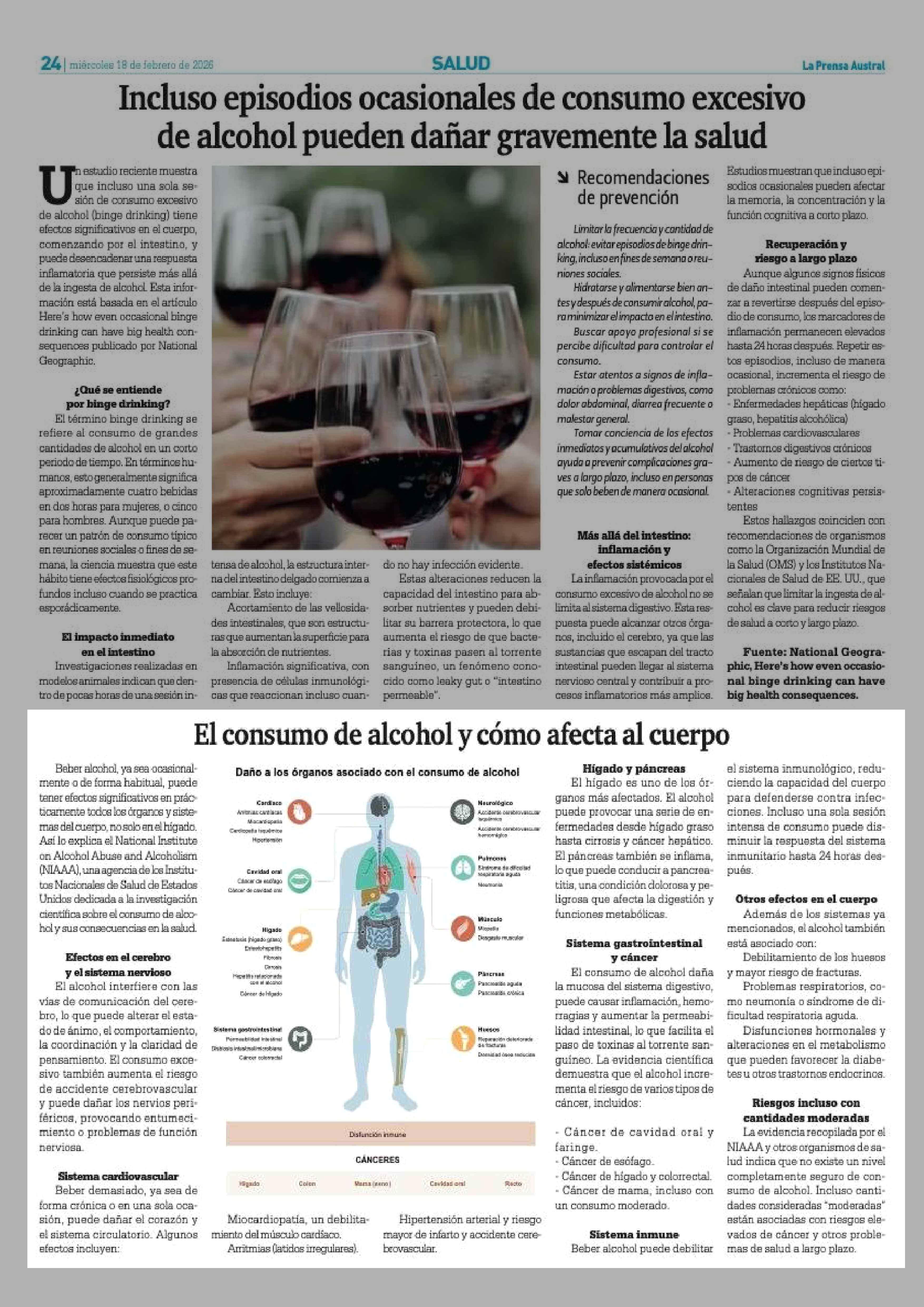 El consumo de alcohol y cómo afecta al cuerpo 18-02-2026 La Prensa Austral |
