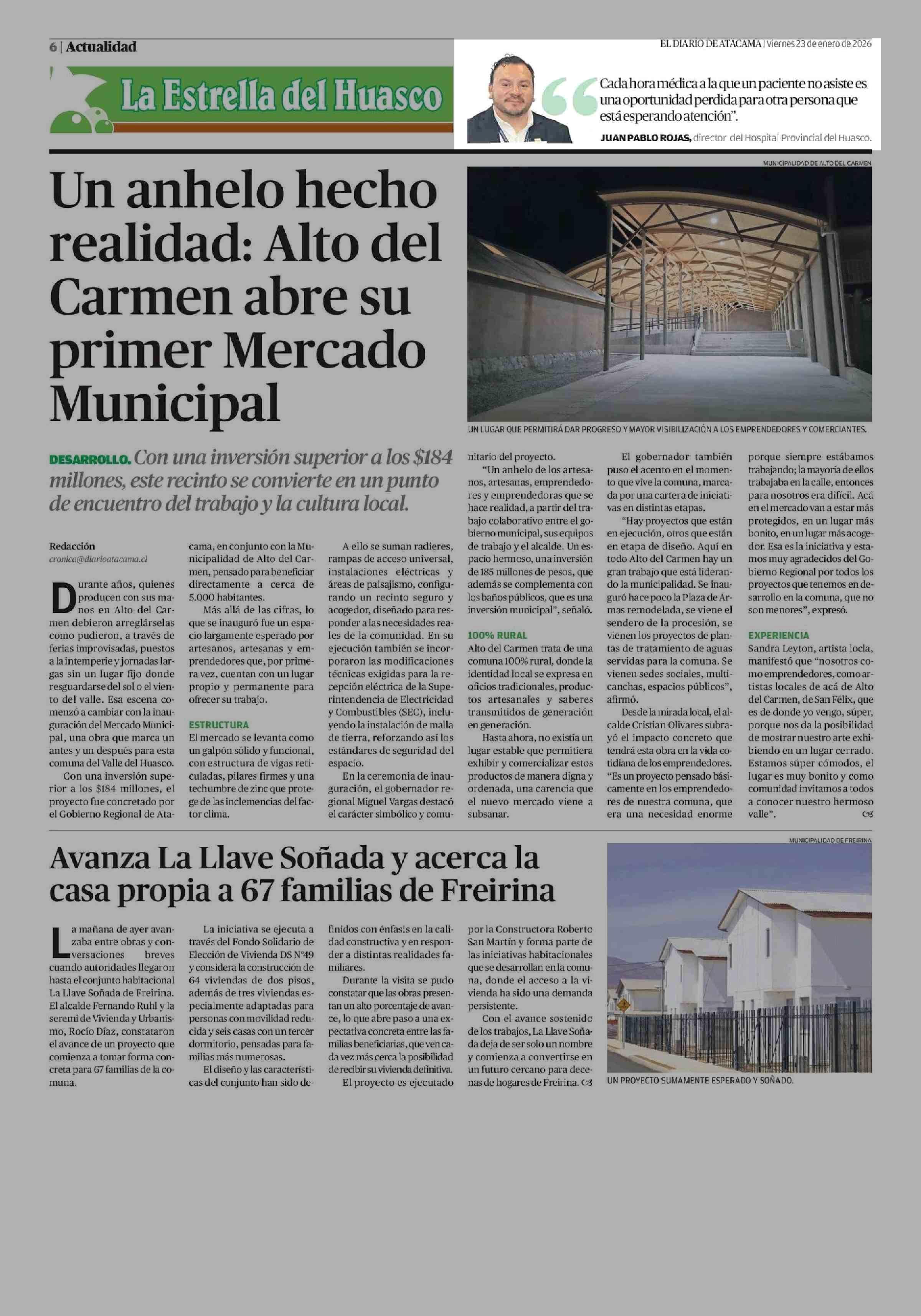 JUAN PABLO ROJAS, director del Hospital Provincial del Huasco. 23-01-2026 El Diario de Atacama |