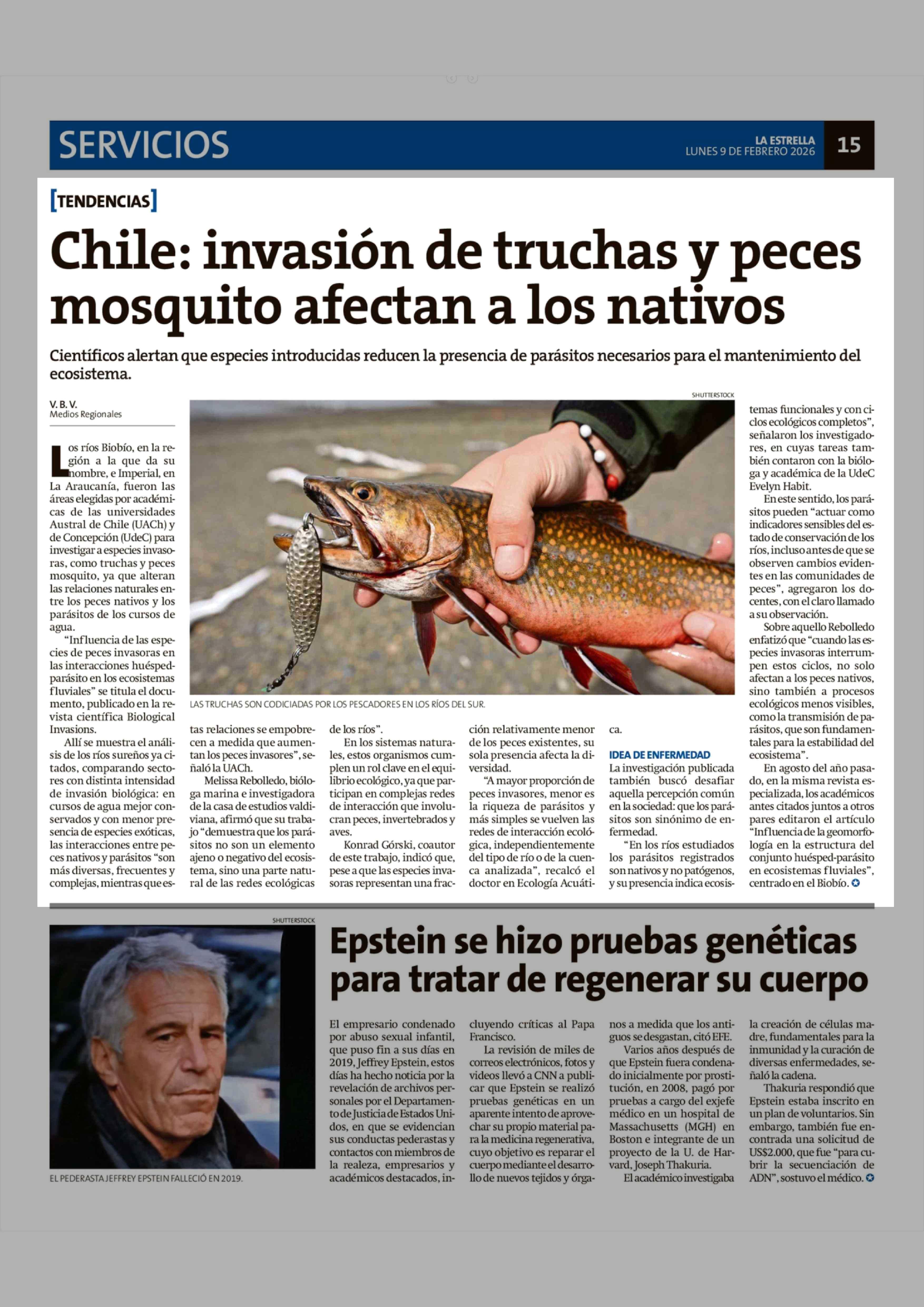 Chile: invasión de truchas y peces mosquito afectan a los nativos 09-02-2026 La Estrella de Chiloé |
