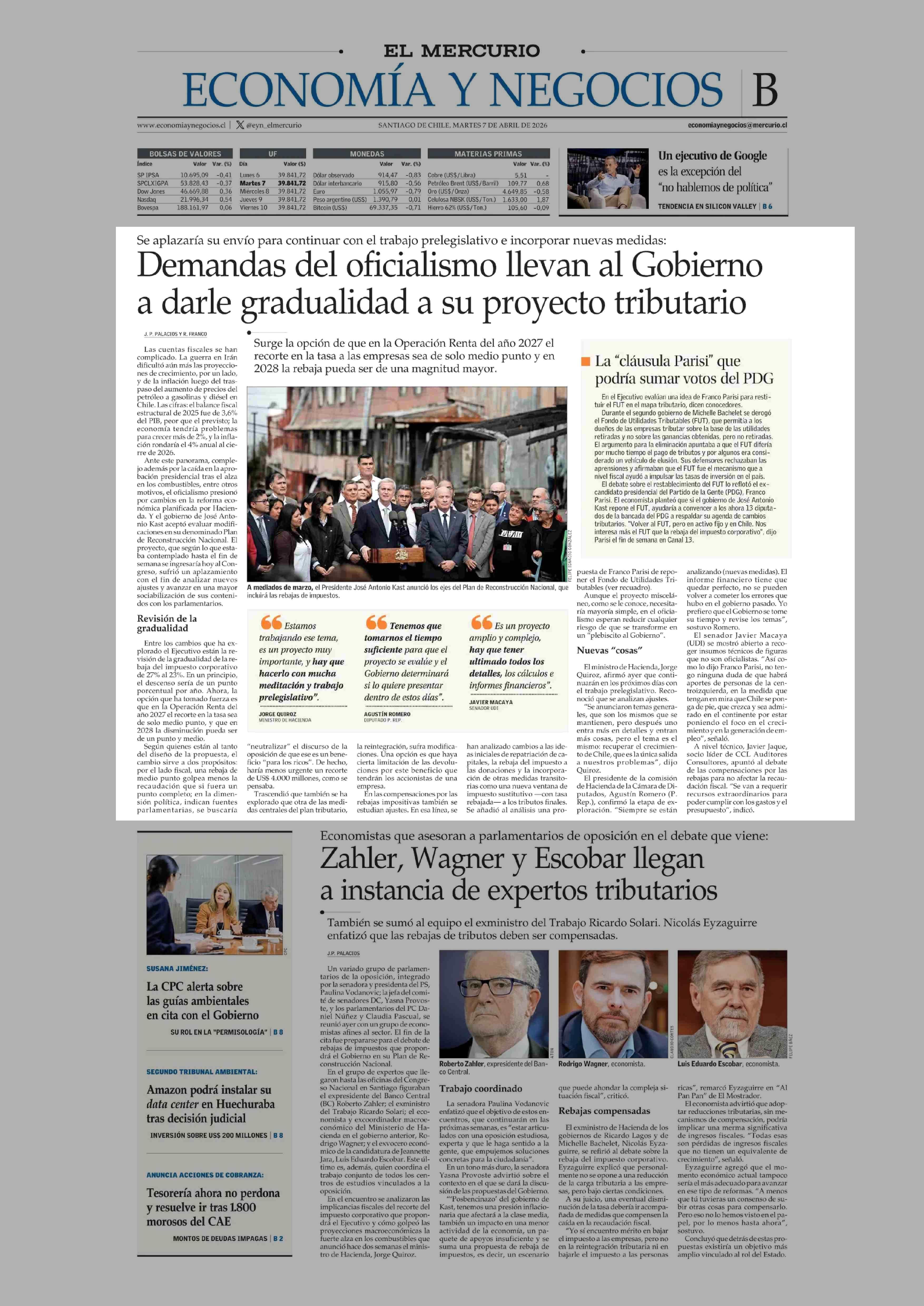 Demandas del oficialismo llevan al Gobierno a darle gradualidad a su proyecto tributario 07-04-2026 El Mercurio |