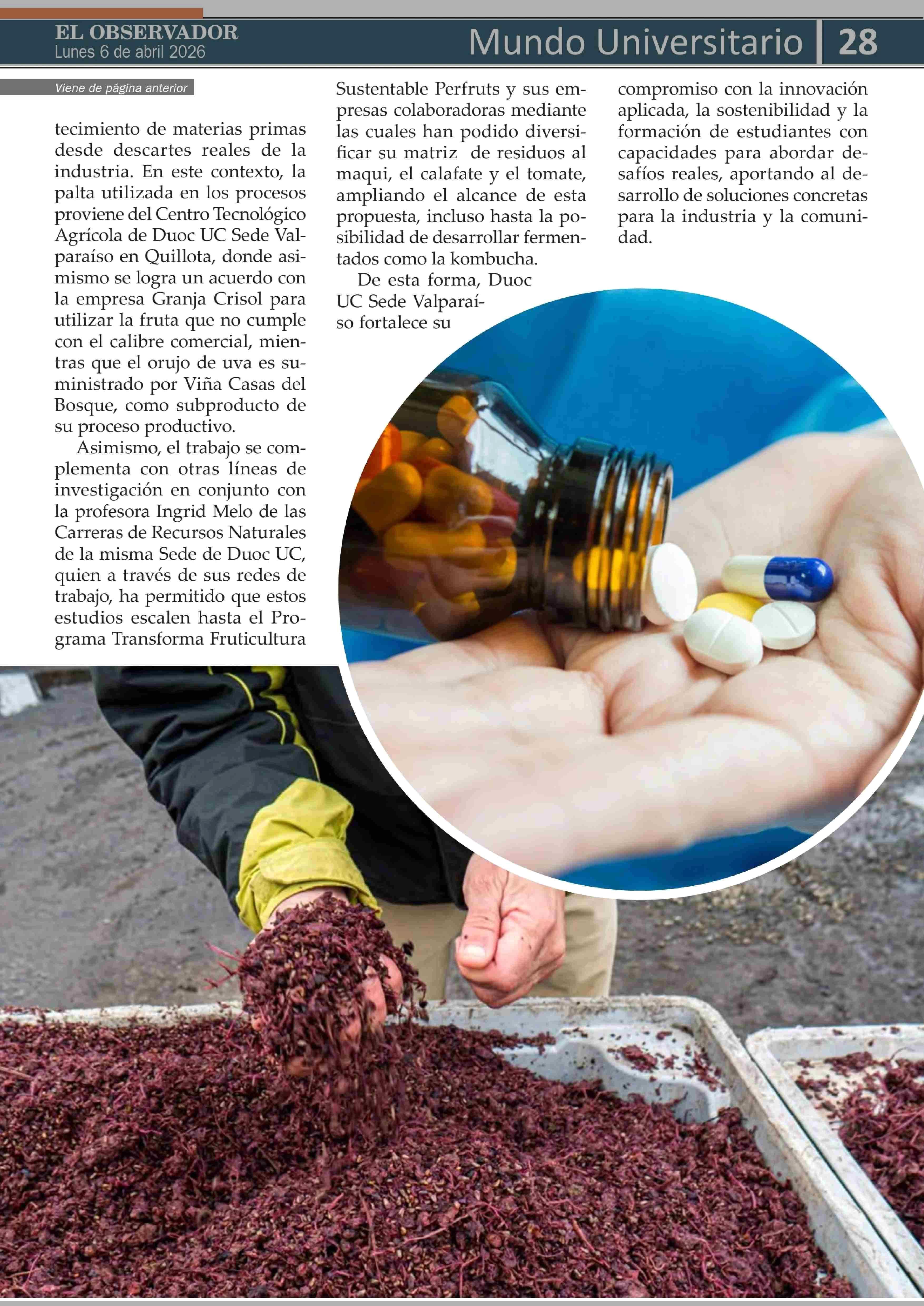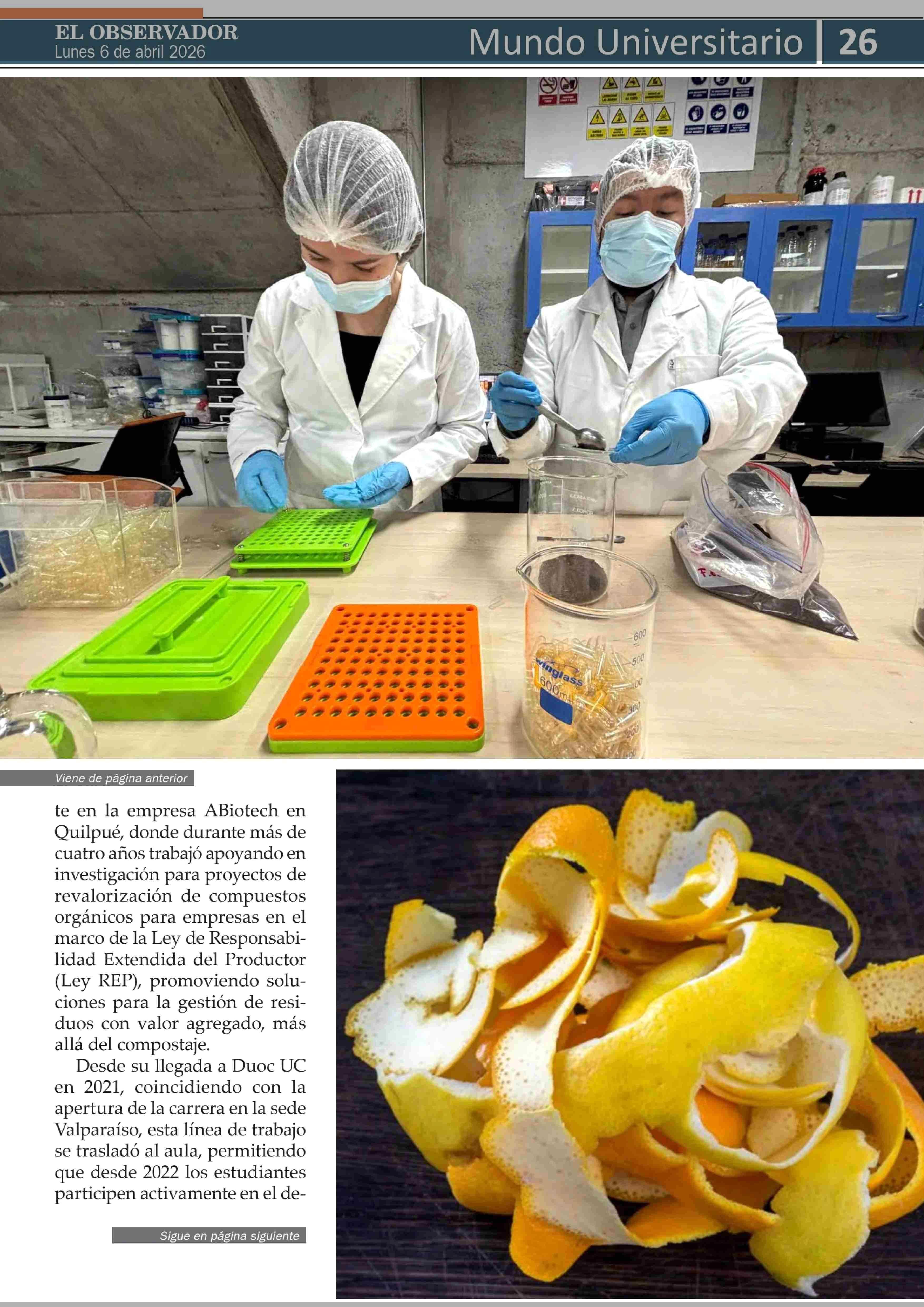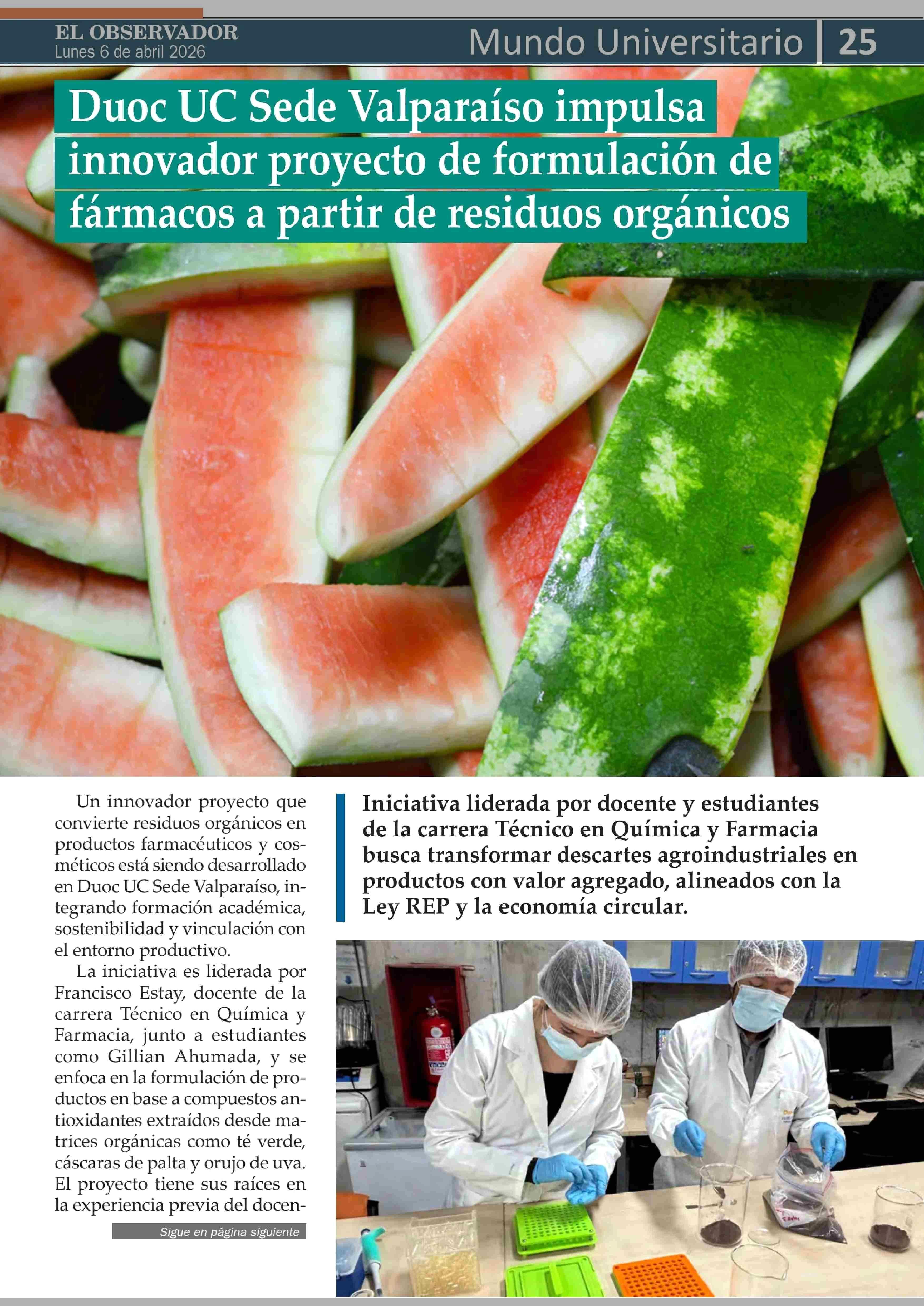Título: Duoc UC Sede Valparaíso impulsa innovador proyecto de formulación de fármacos a partir de residuos orgánicos