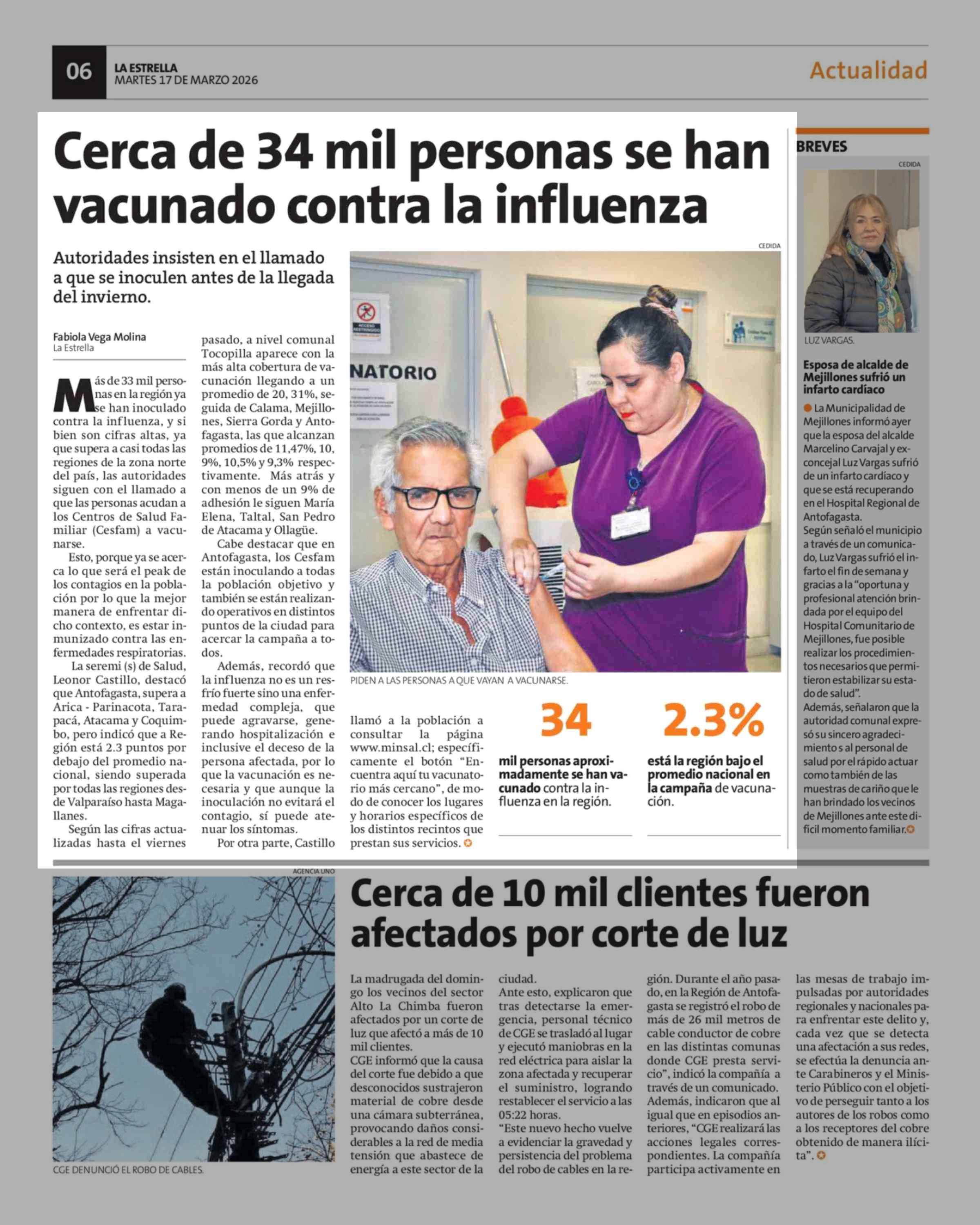 Cerca de 34 mil personas se han vacunado contra la influenza 17-03-2026 La Estrella de Antofagasta |