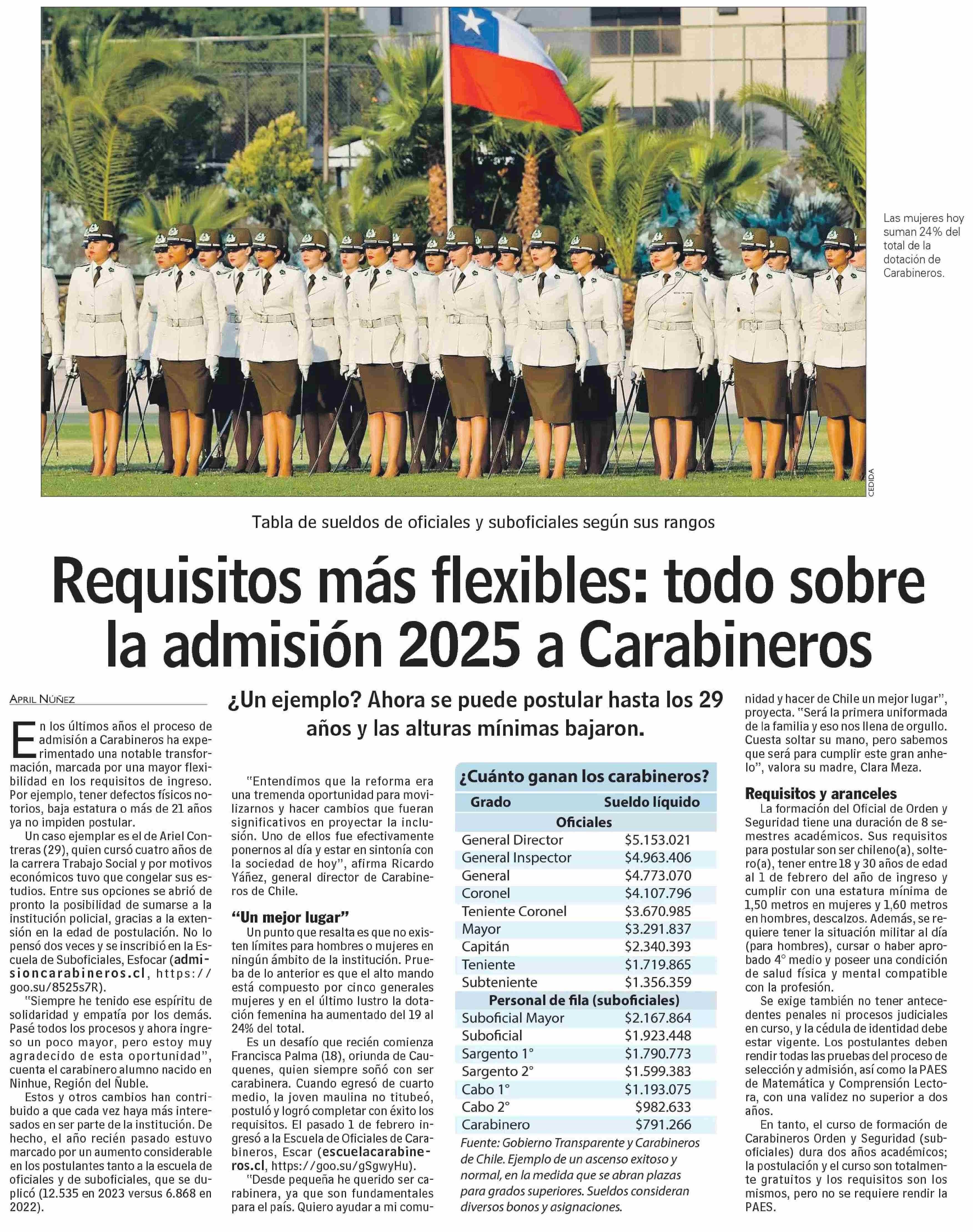 Requisitos más flexibles: todo sobre la admisión 2025 a Carabineros 19-02-2024 Las Últimas Noticias |
