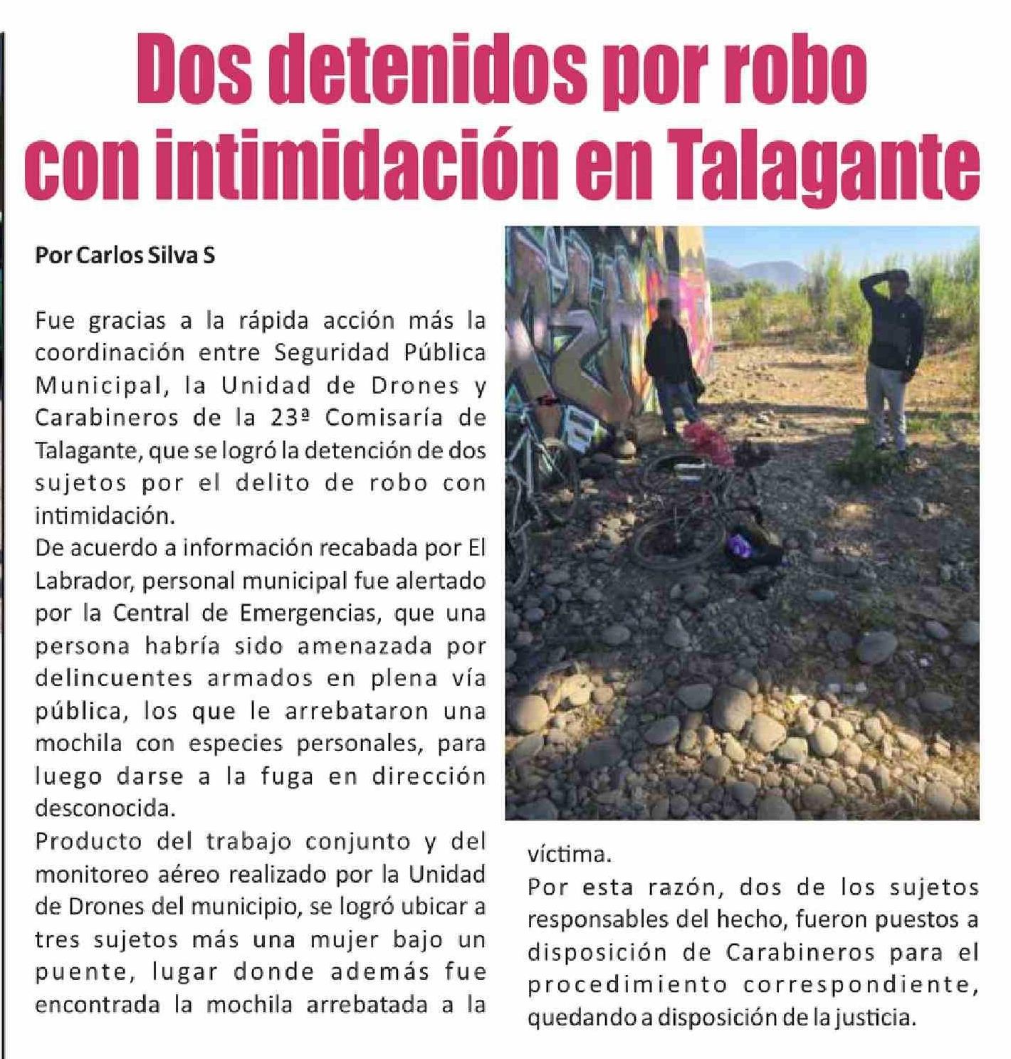 Título: Dos detenidos por robo con intimidación en Talagante