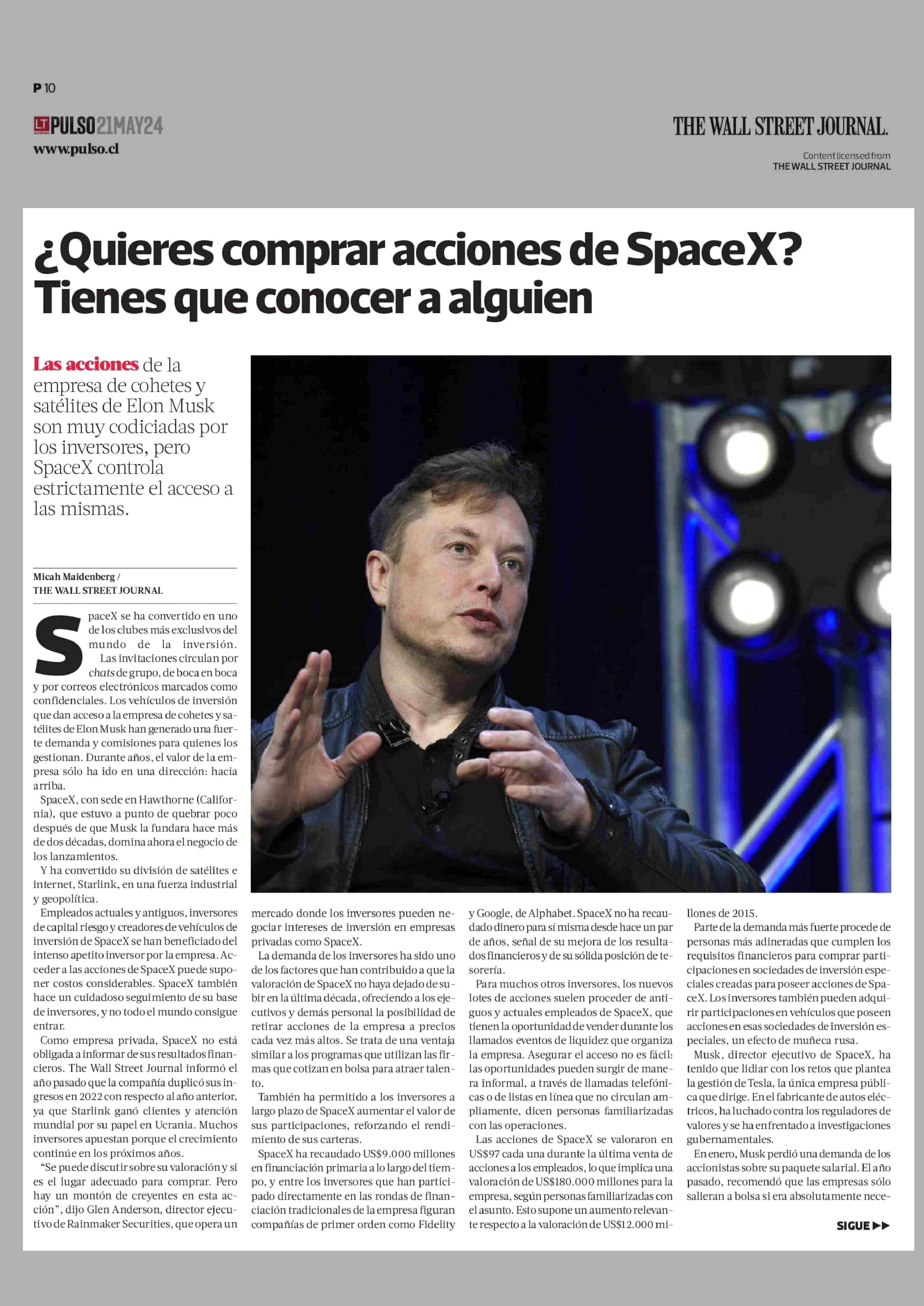 Título: ¿Quieres comprar acciones de SpaceX? Tienes que conocer a alguien