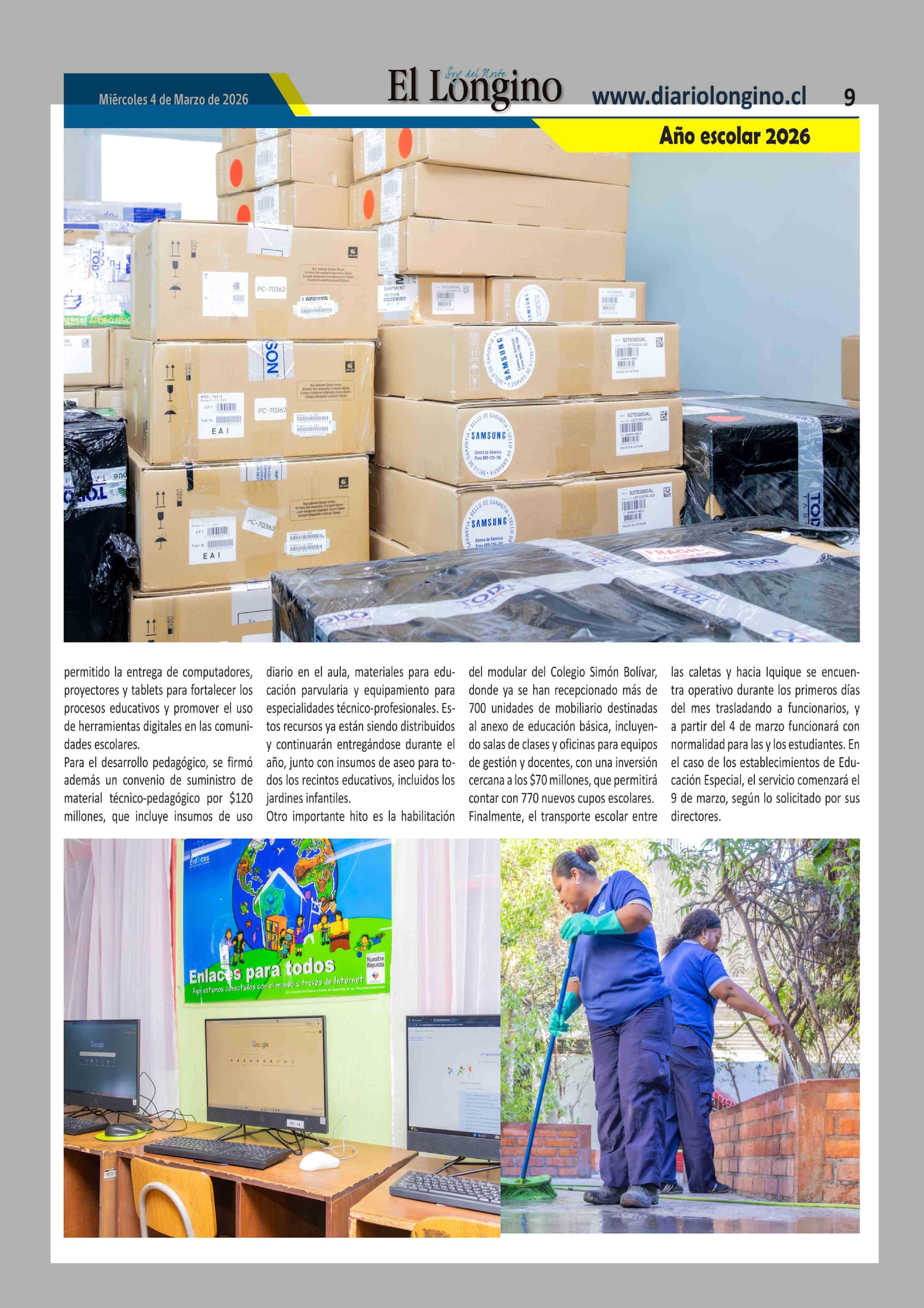 Iquique inicia el año escolar con fuerte inversión en infraestructura, conectividad y equipamiento 04-03-2026 El Longino |
