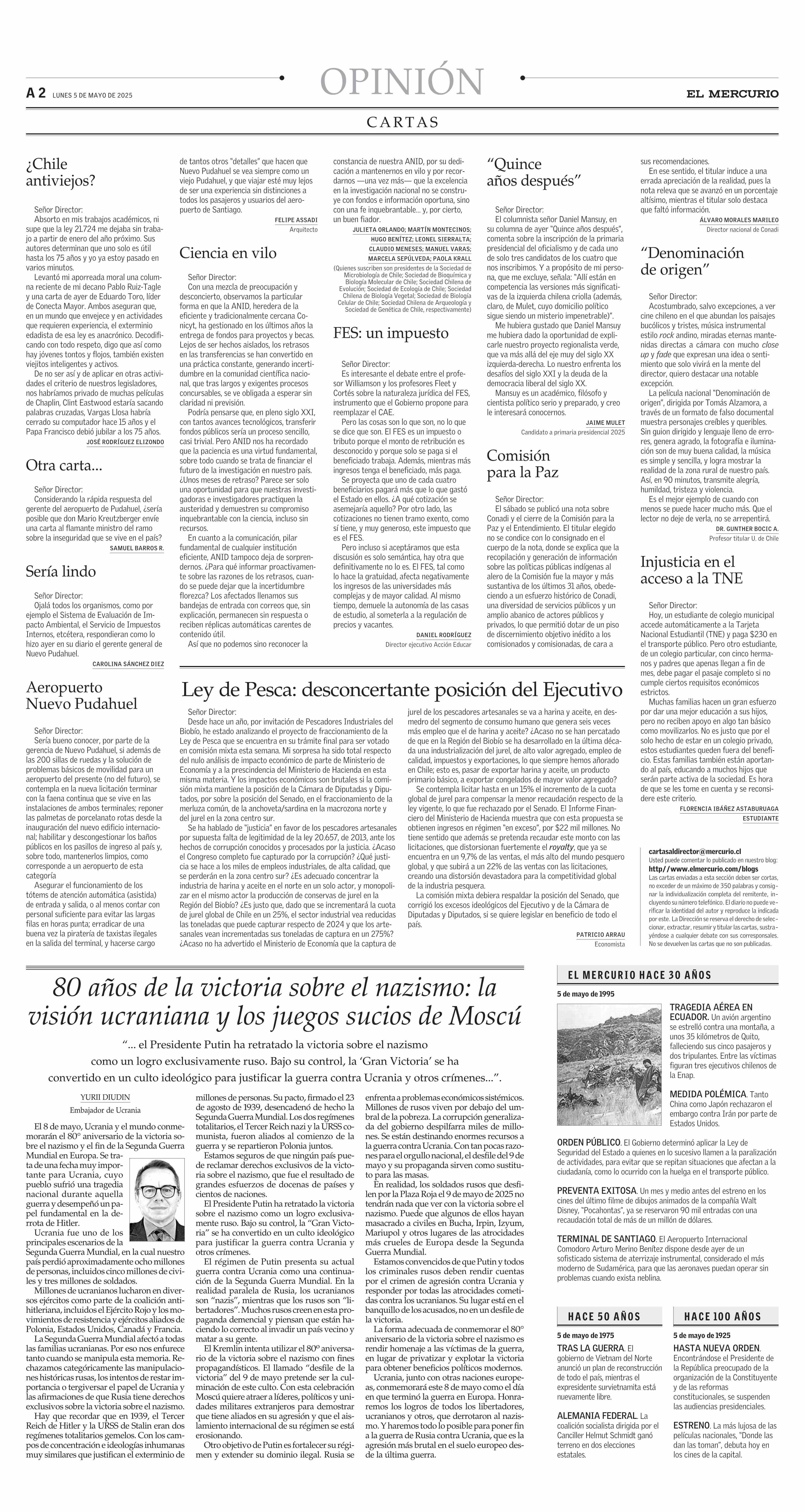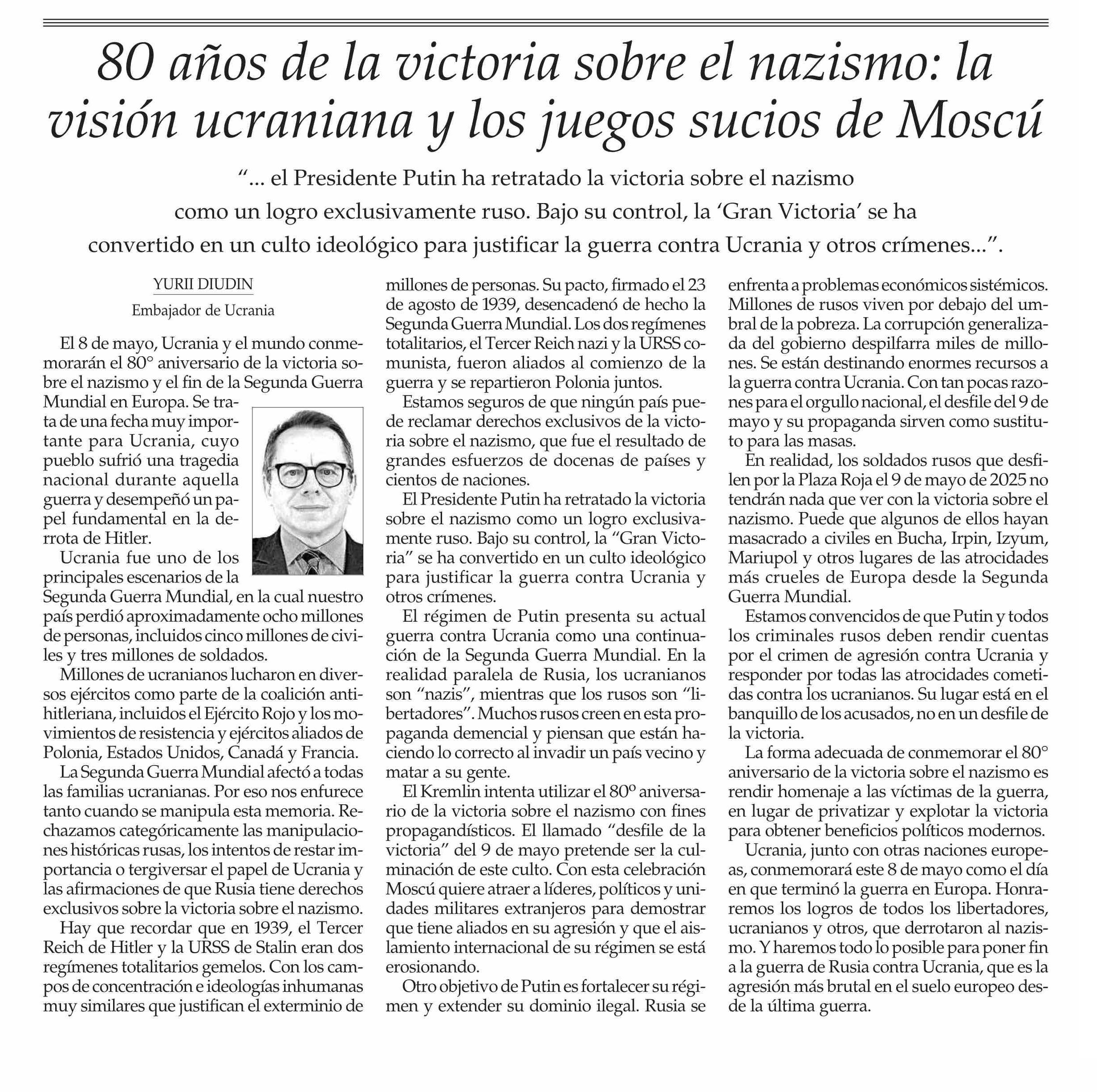 COLUMNAS DE OPINIÓN: 80 años de la victoria sobre el nazismo: la visión ucraniana y los juegos sucios de Moscú 05-05-2025 El Mercurio |