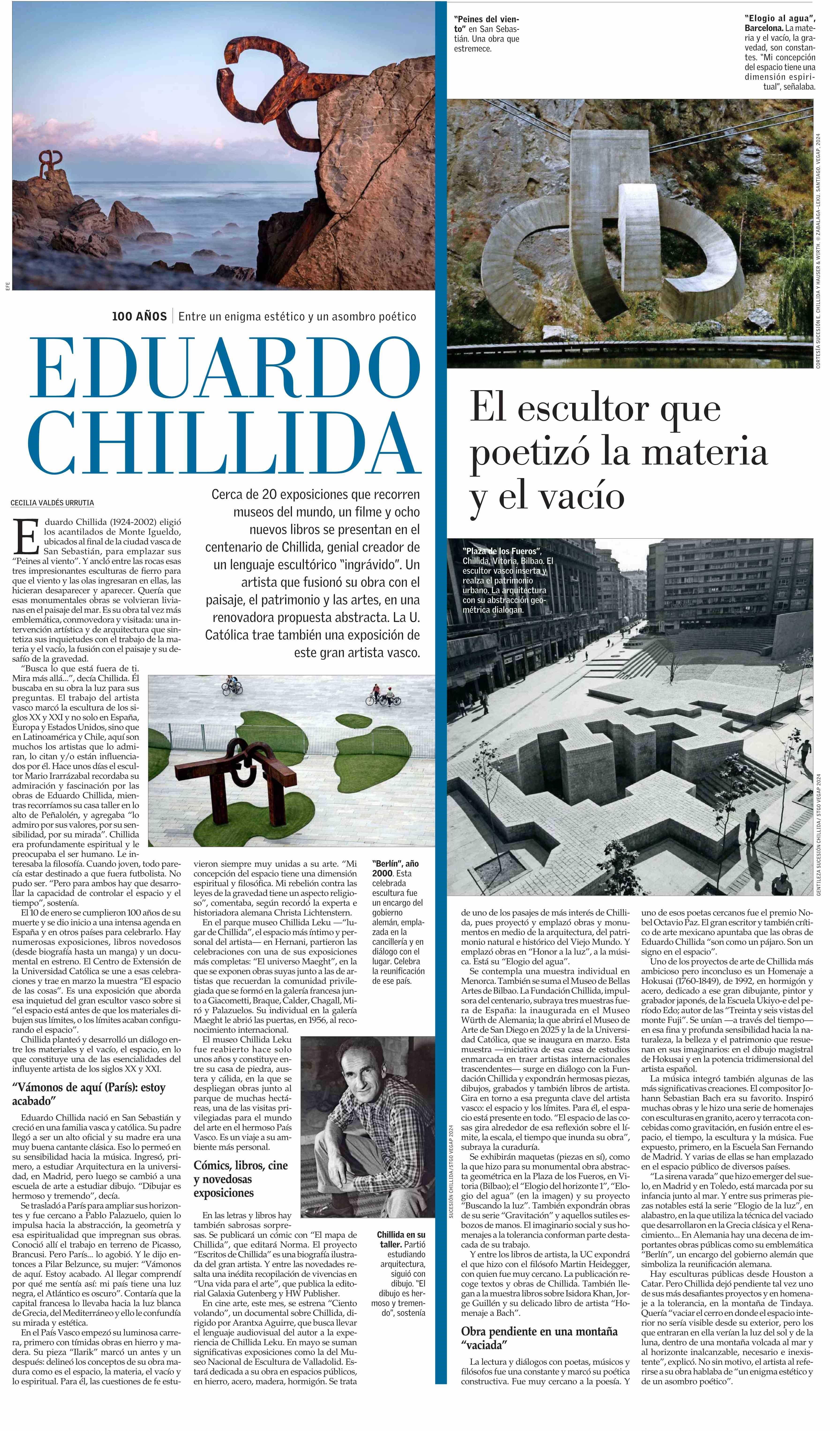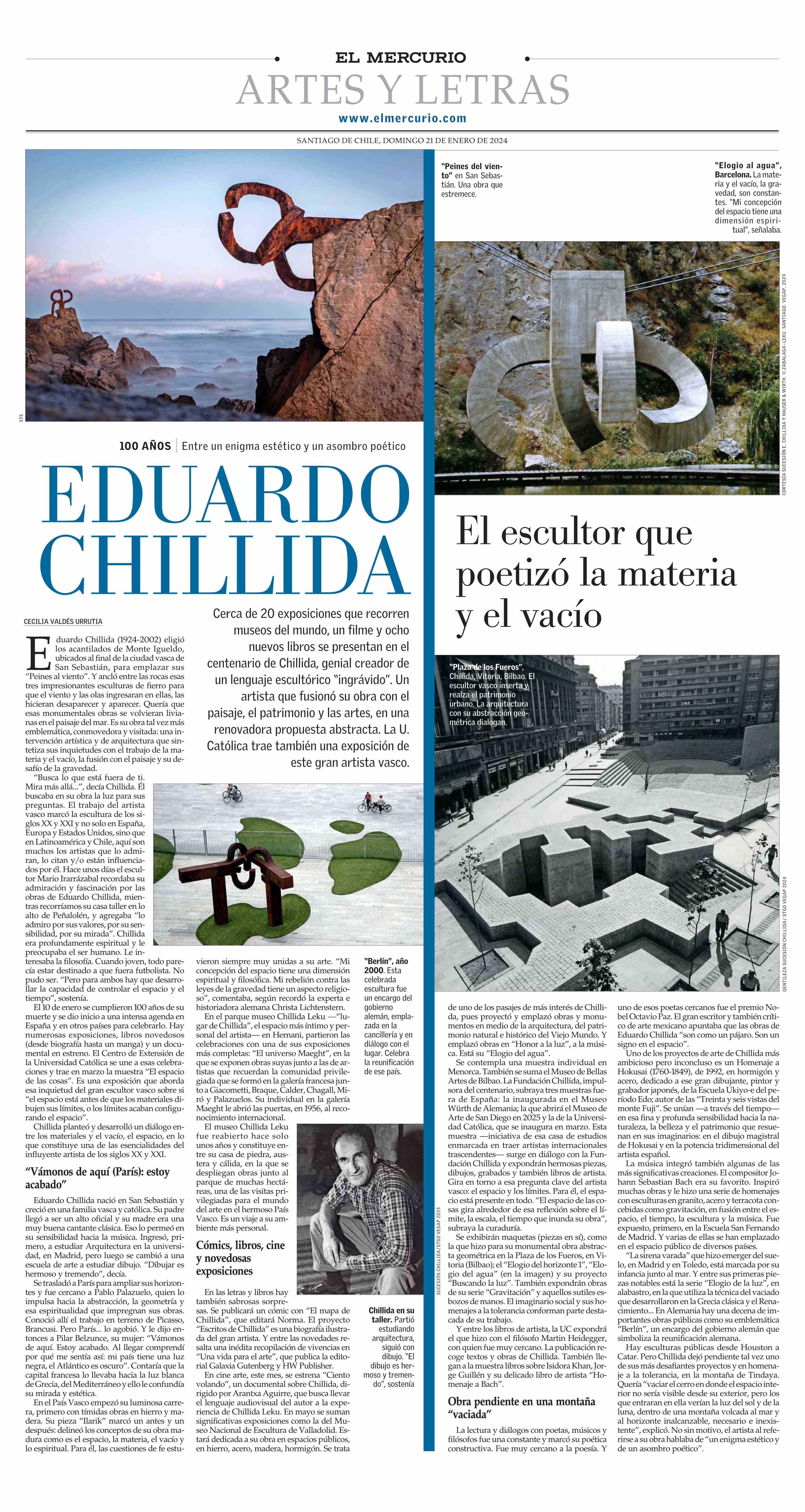 EDUARDO CHILLIDA El escultor que poetizó la materia y el vacío 21-01-2024 El Mercurio |