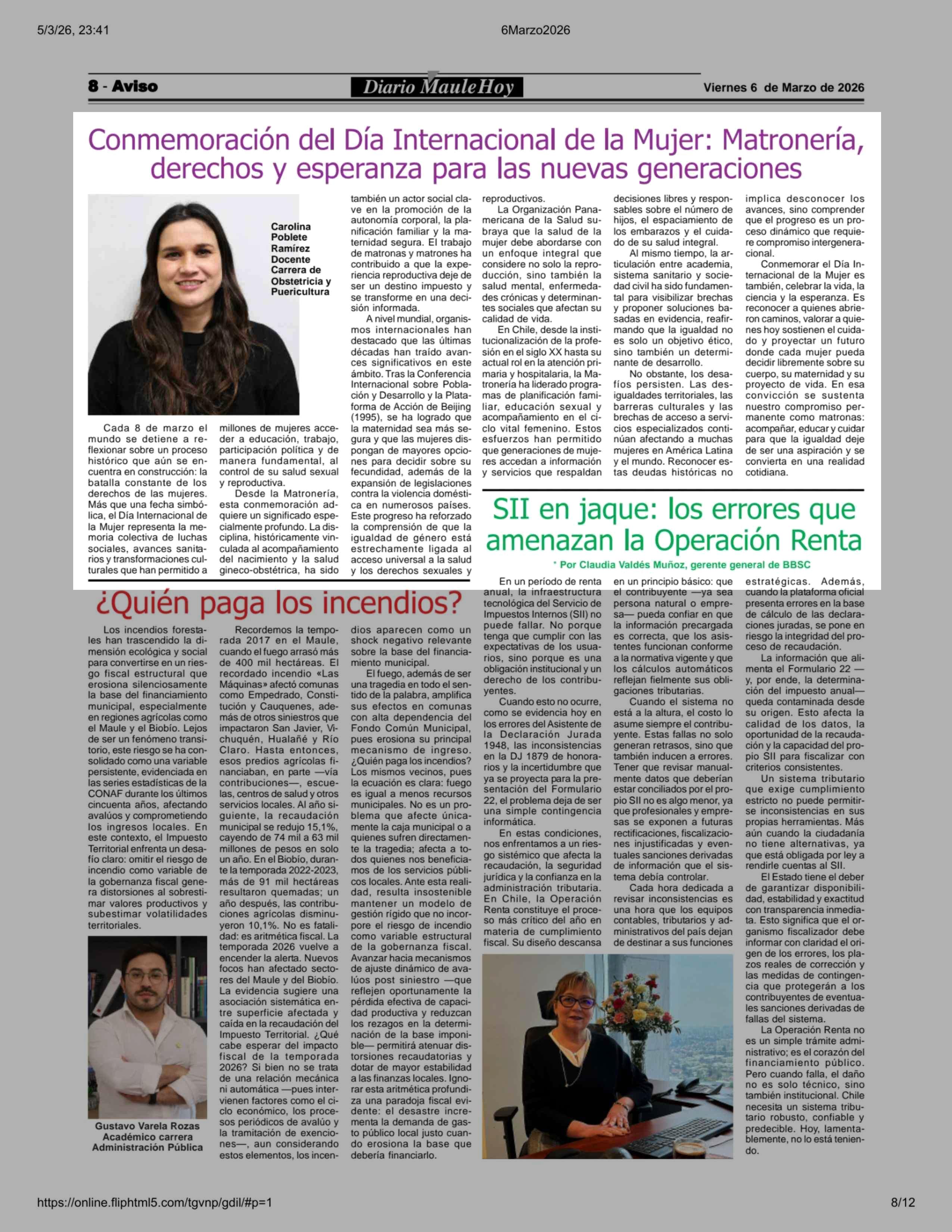 Conmemoración del Día Internacional de la Mujer: Matronería, derechos y esperanza para las nuevas generaciones 06-03-2026 Maule Hoy |