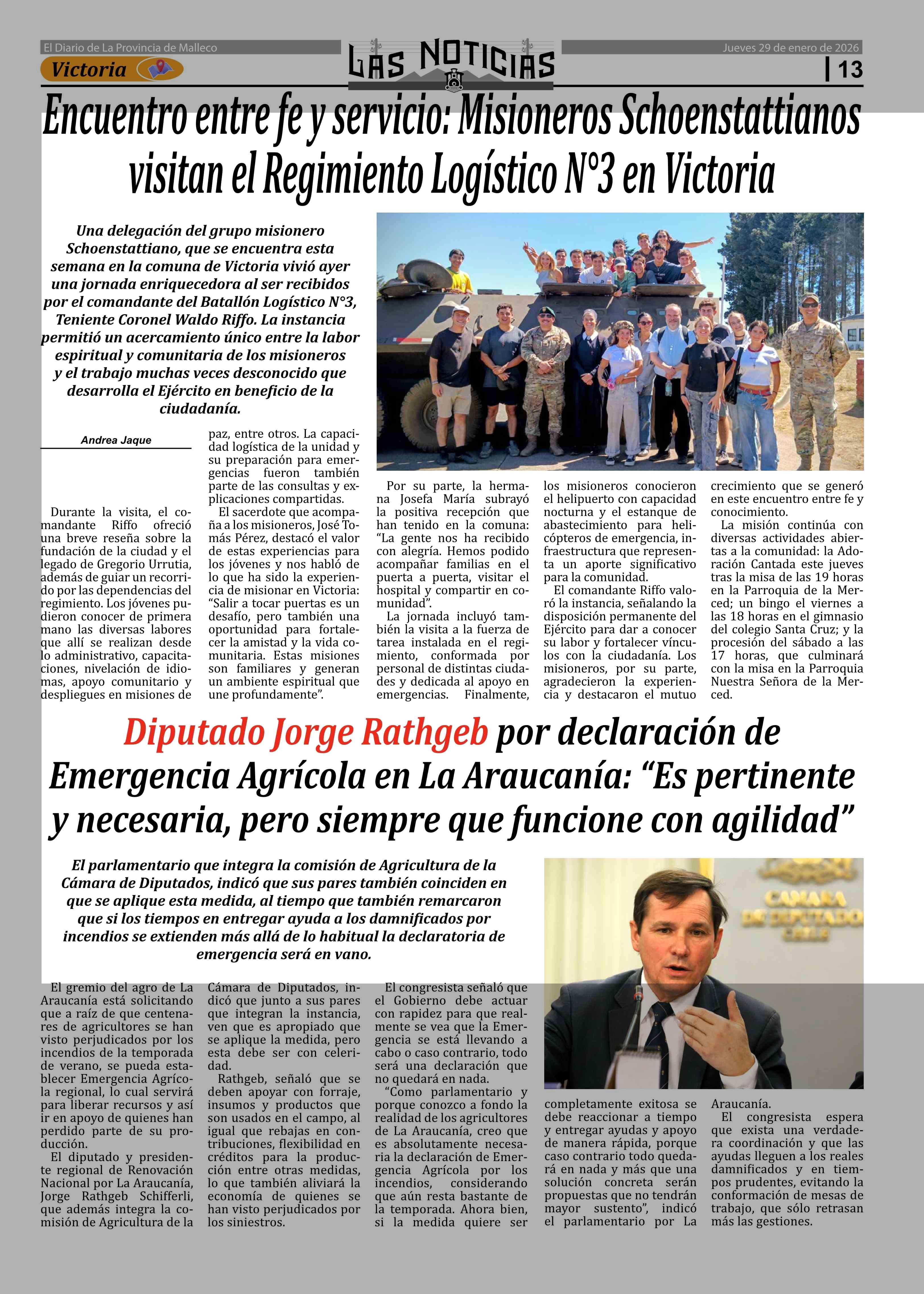 Encuentro entre fe y servicio: Misioneros Schoenstattianos visitan el Regimiento Logístico Nº3 en Victoria 29-01-2026 Las Noticias |