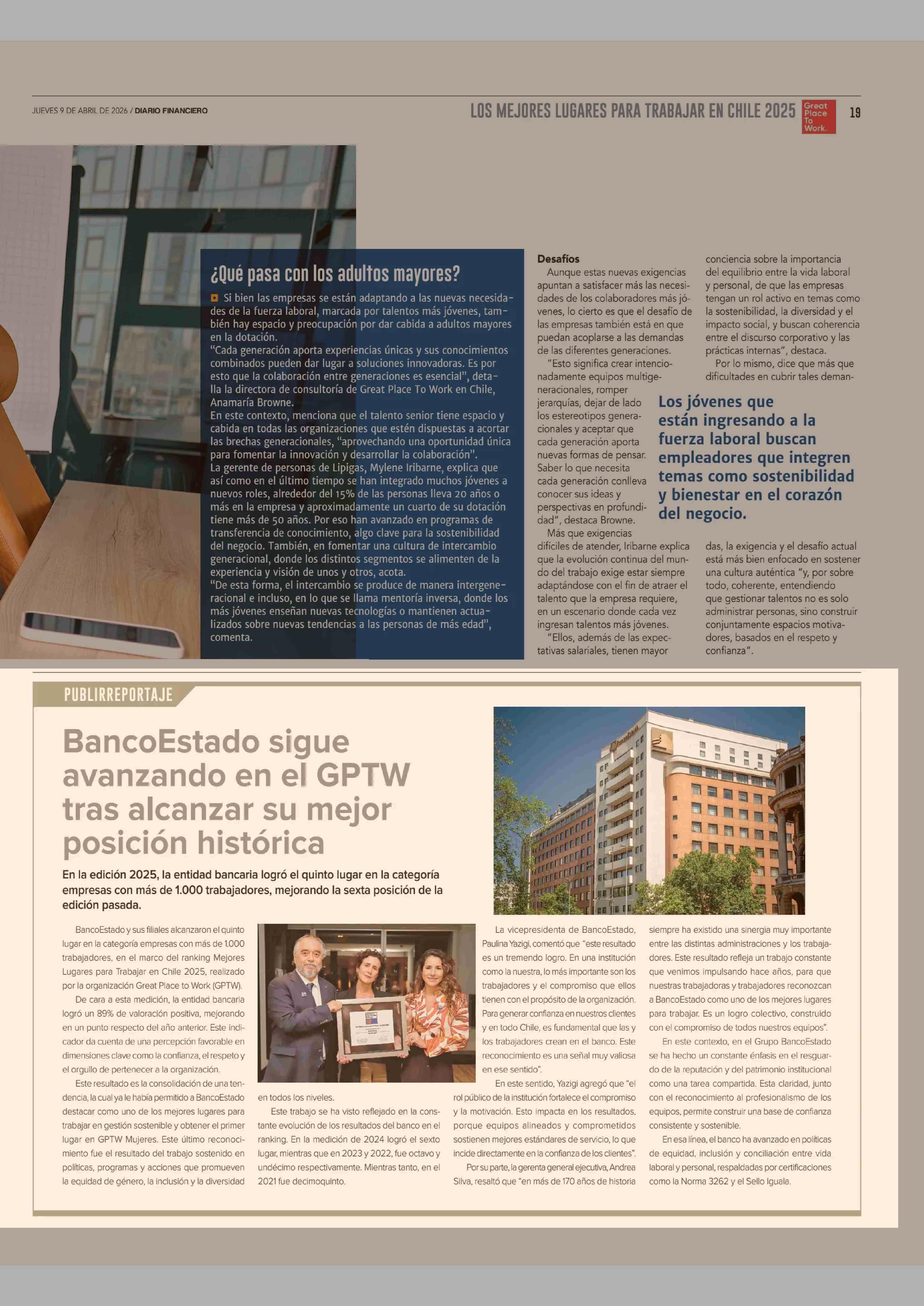 Título: BancoEstado sigue avanzando en el GPTW tras alcanzar su mejor posición histórica