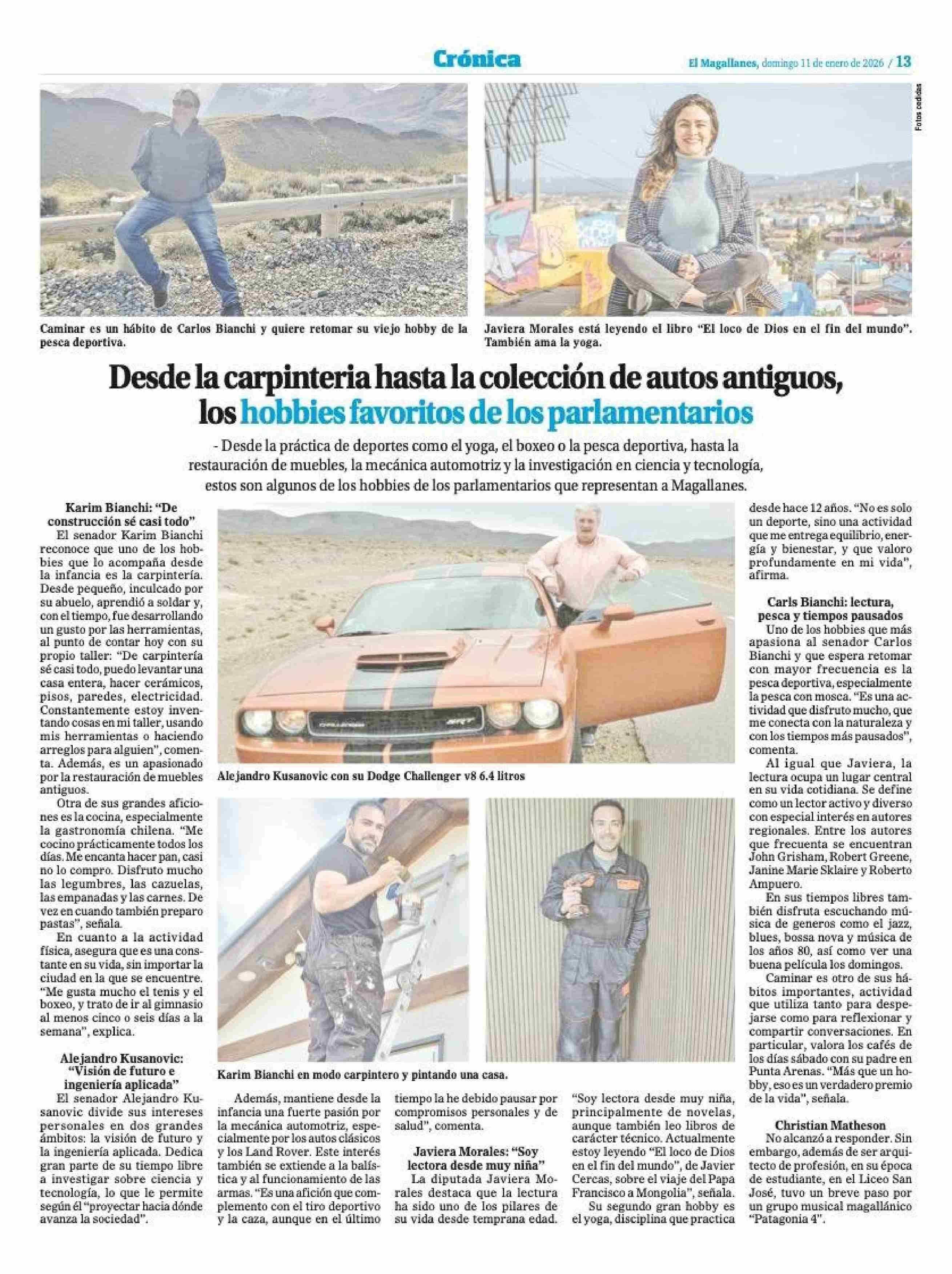 Desde la carpinteria hasta la colección de autos antiguos, los hobbies favoritos de los parlamentarios 11-01-2026 El Magallanes |