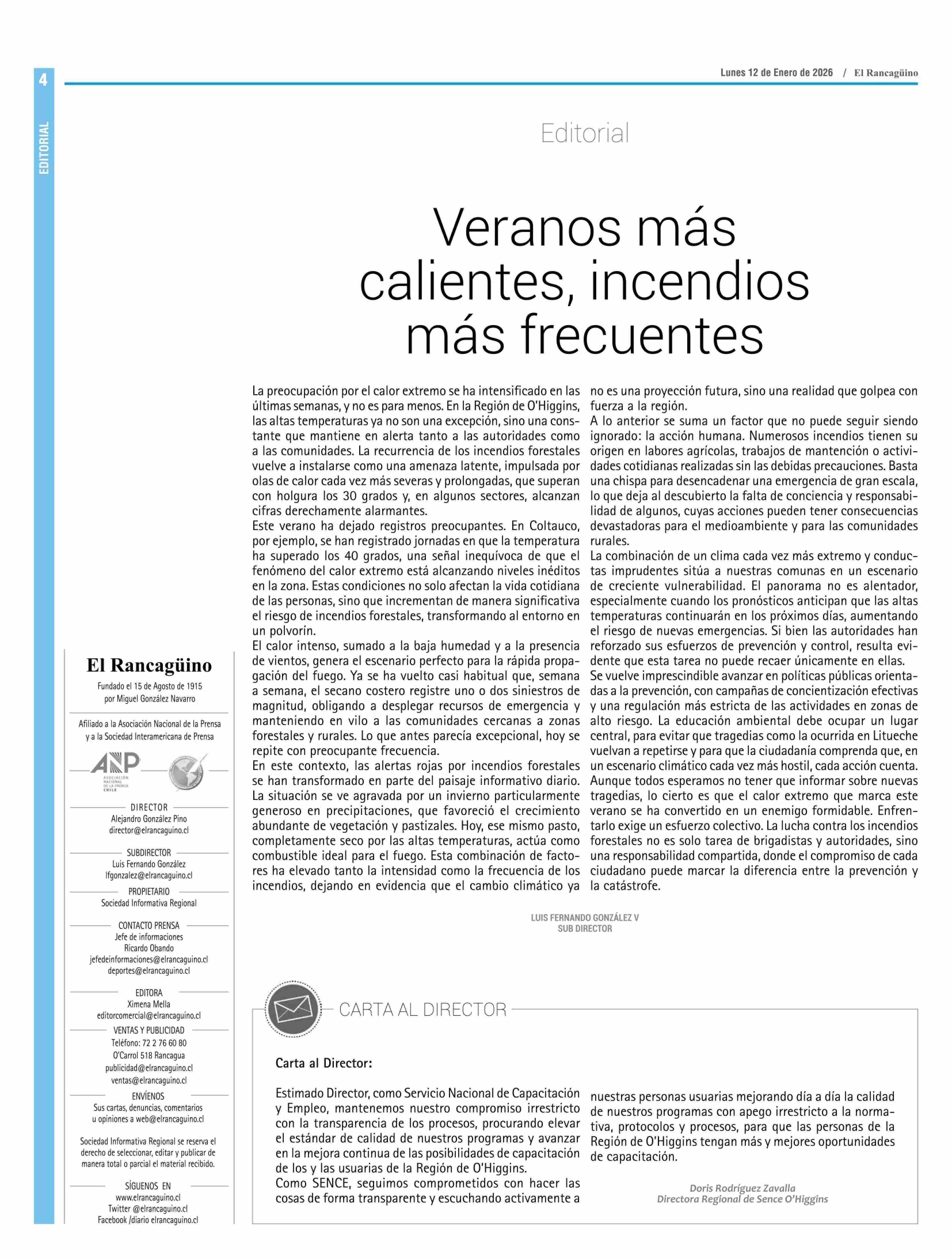 Fecha: 12-01-2026 Sector: Editorial Región: Región del Libertador General Bernardo O'Higgins