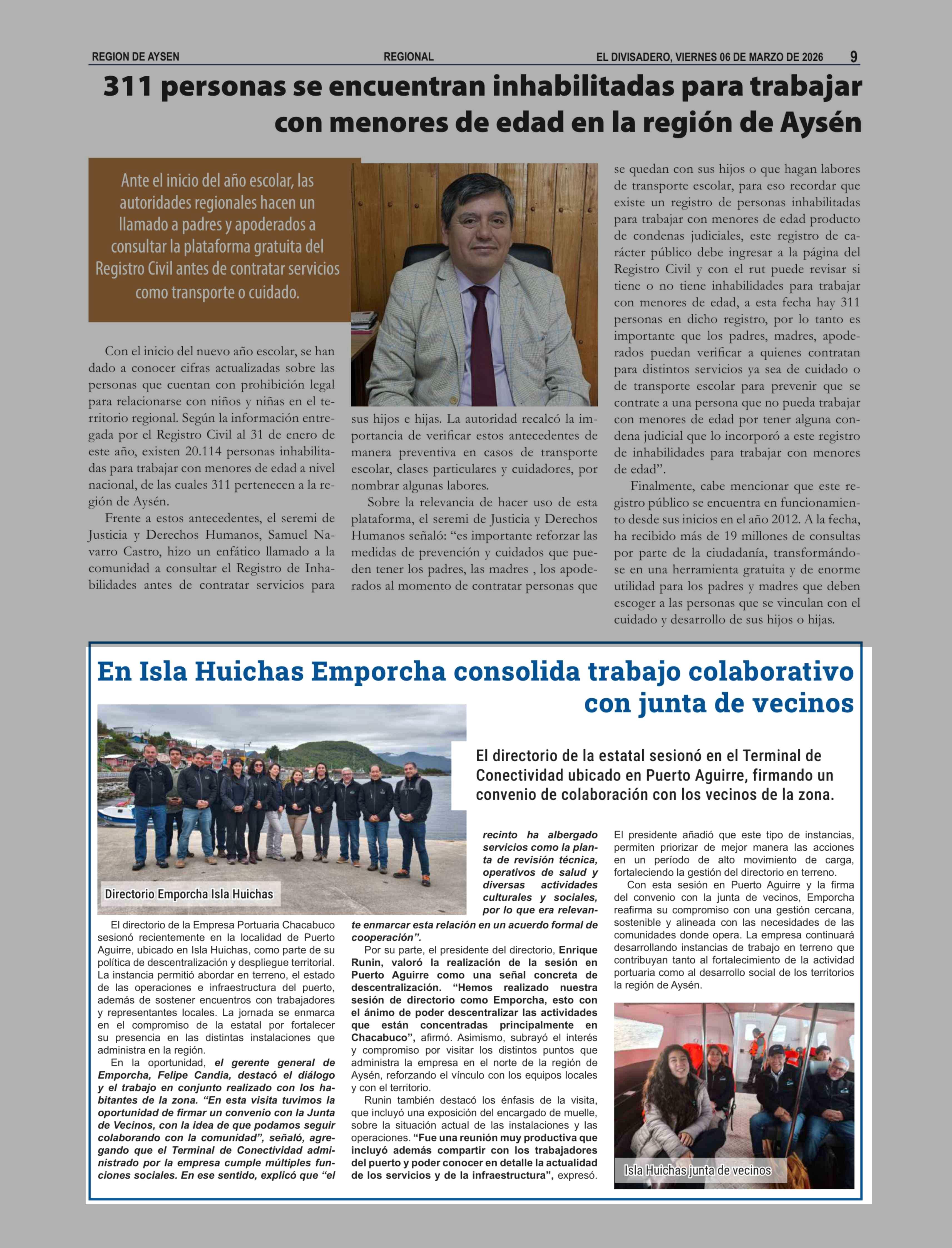 | Fecha: | 06-03-2026 | Sector: | Noticia general | Región: | Región Aysén del General Carlos Ibáñez del Campo |