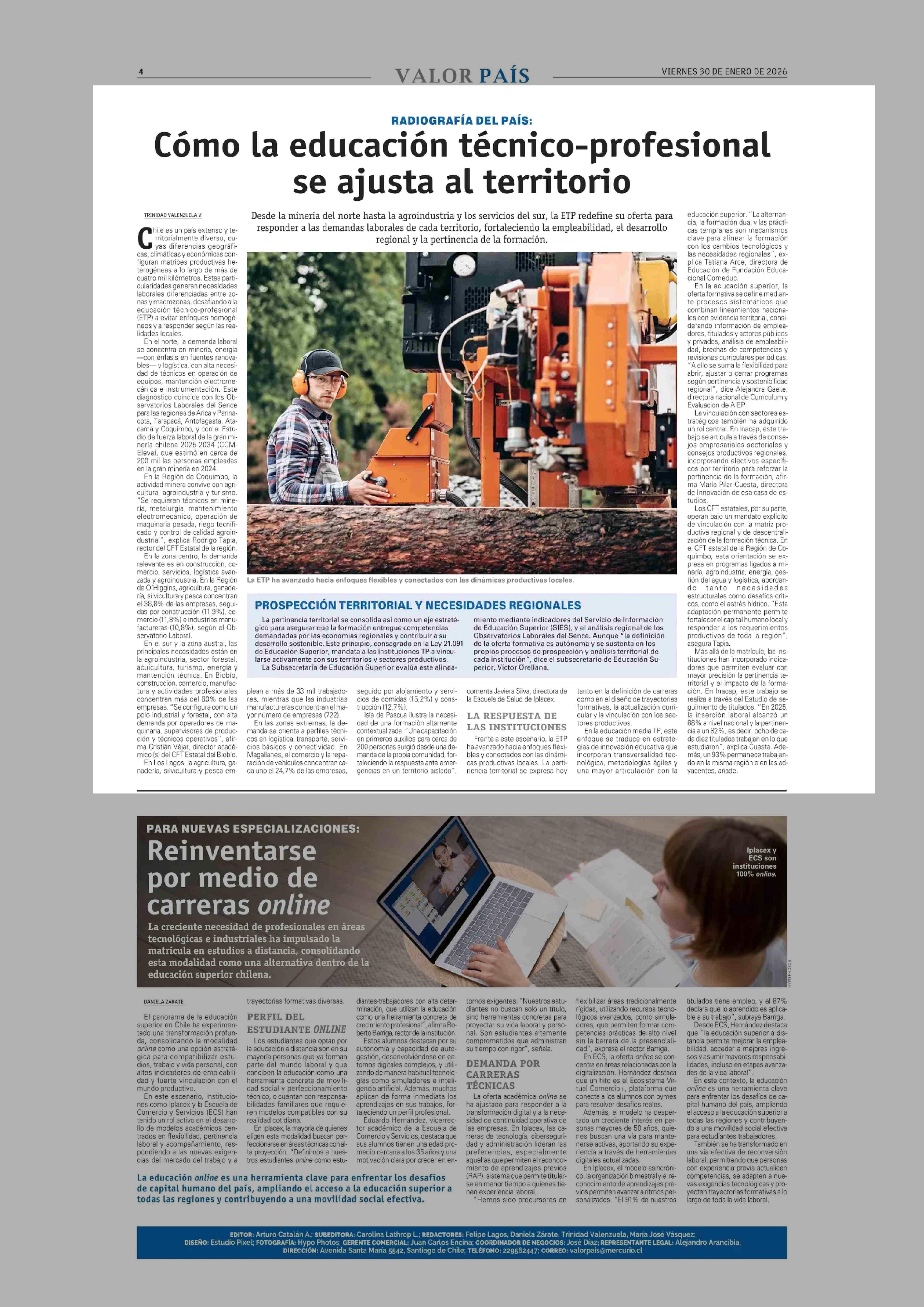 Cómo la educación técnico-profesional se ajusta al territorio 30-01-2026 El Mercurio |