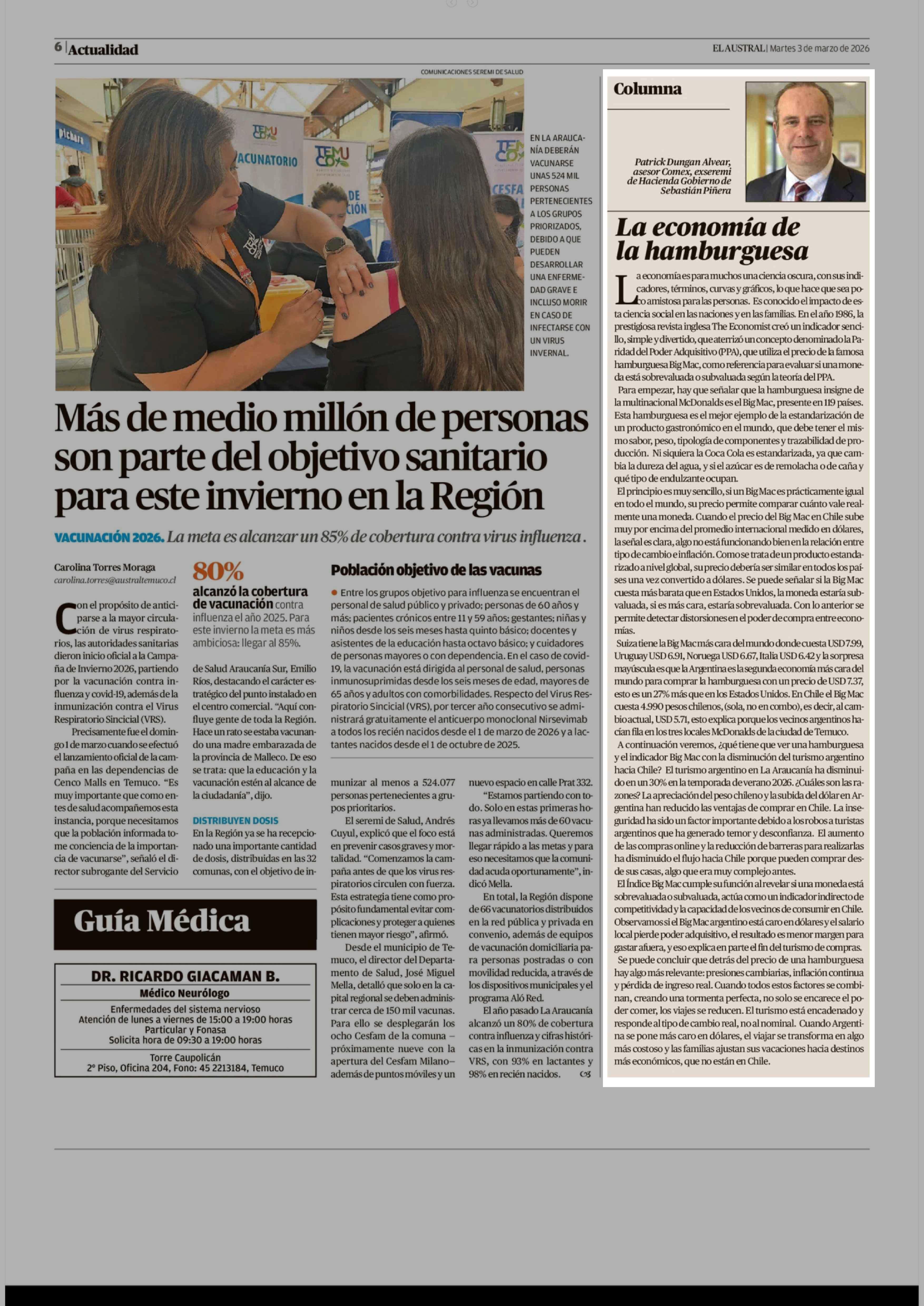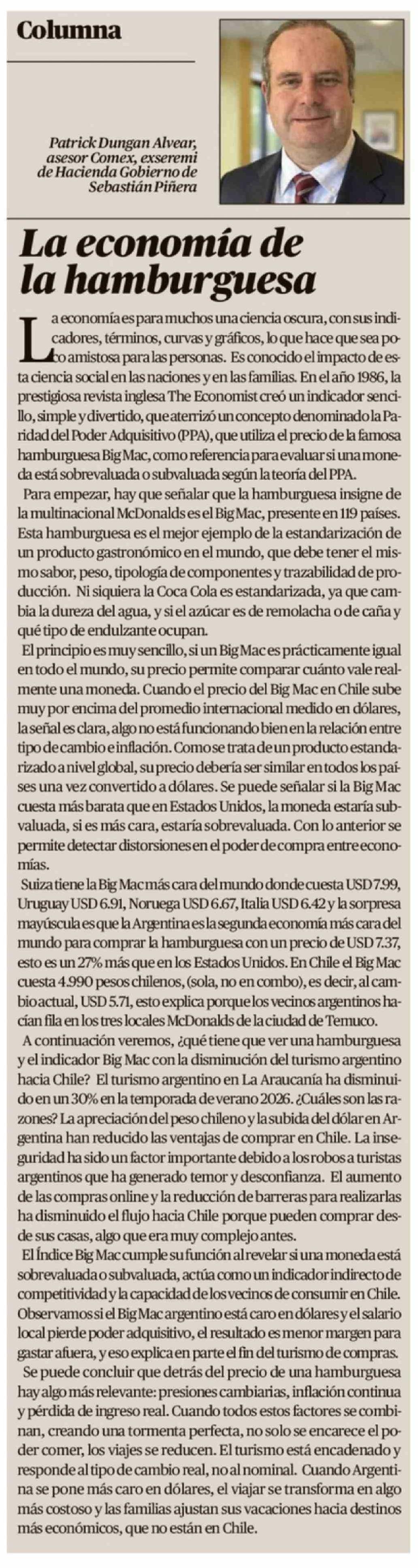Columnas de Opinión: La economía de la hamburguesa 03-03-2026 El Austral de la Araucanía |