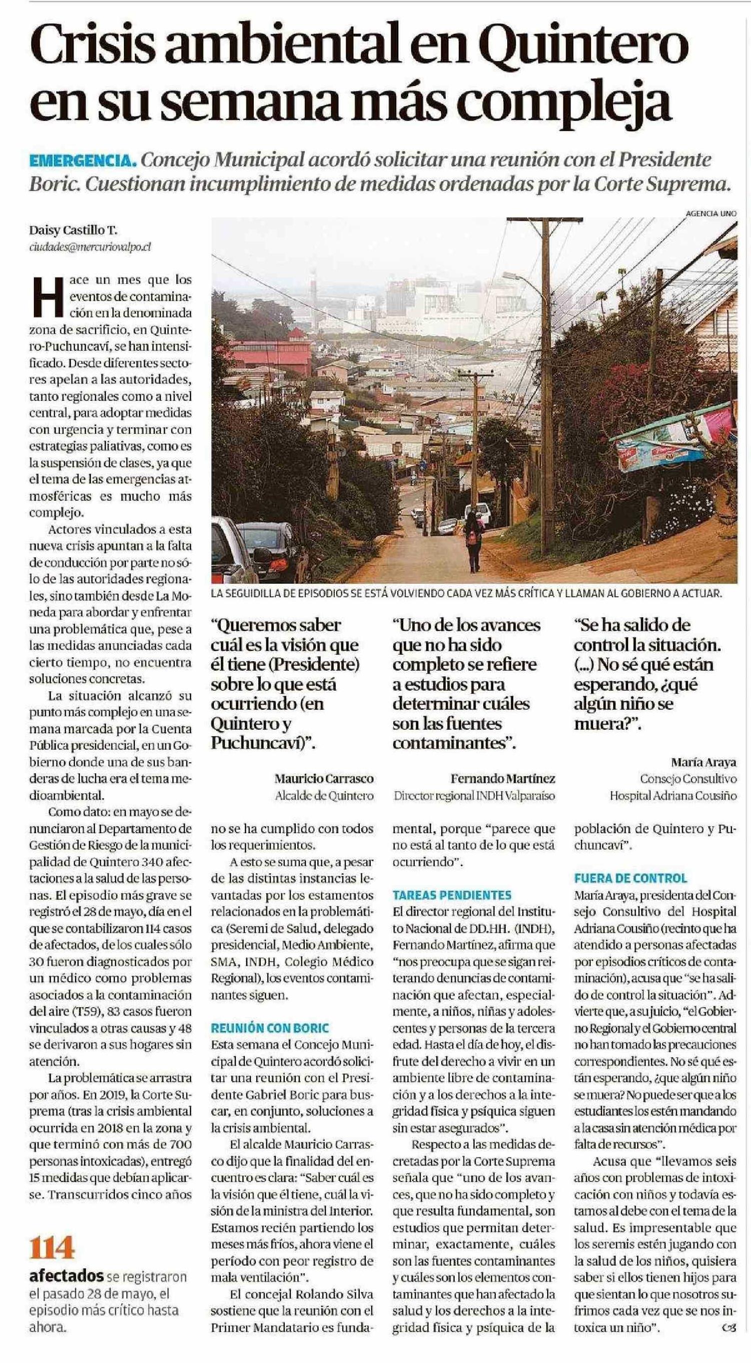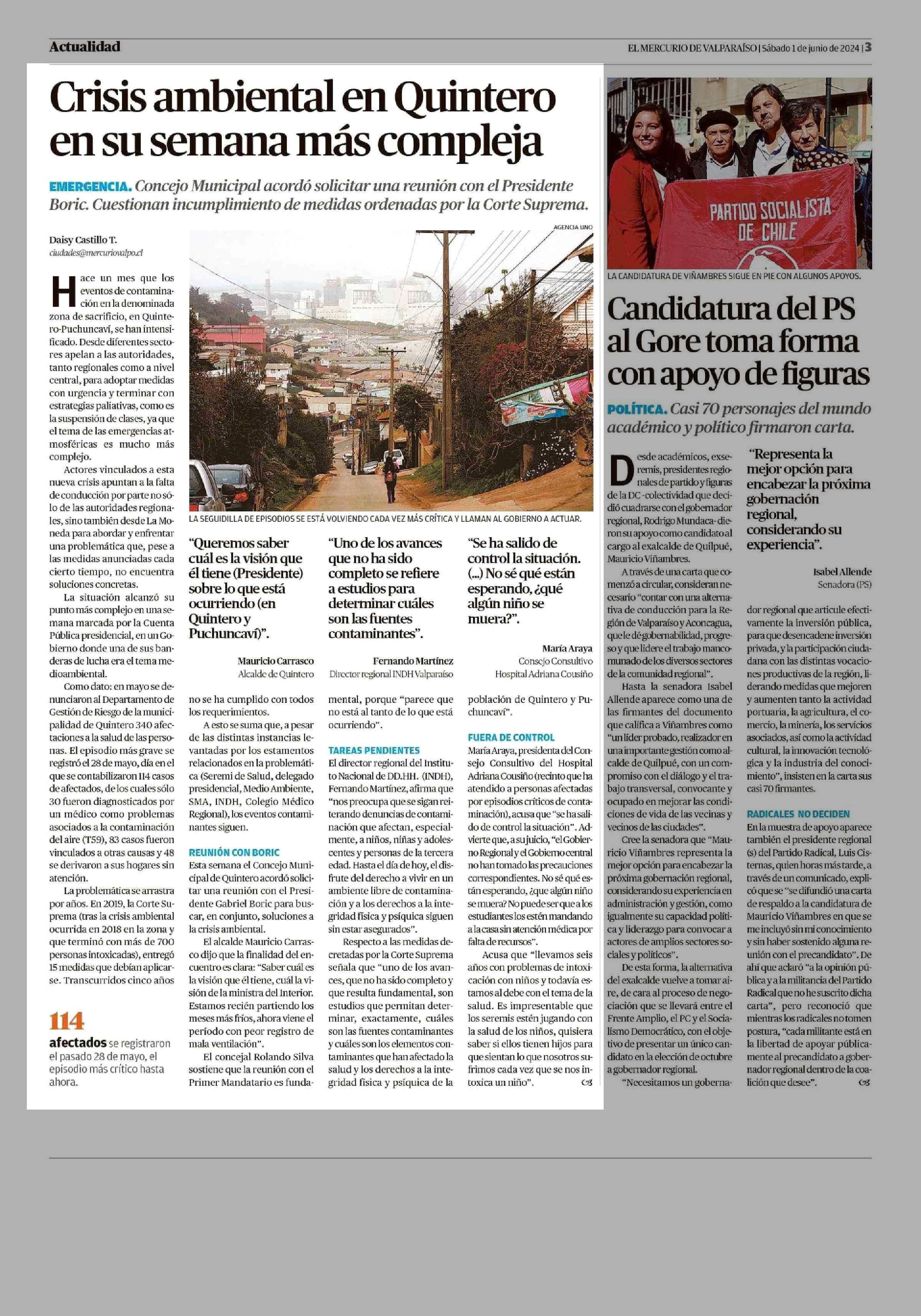 Crisis ambiental en Quintero en su semana más compleja 01-06-2024 El Mercurio de Valparaíso |