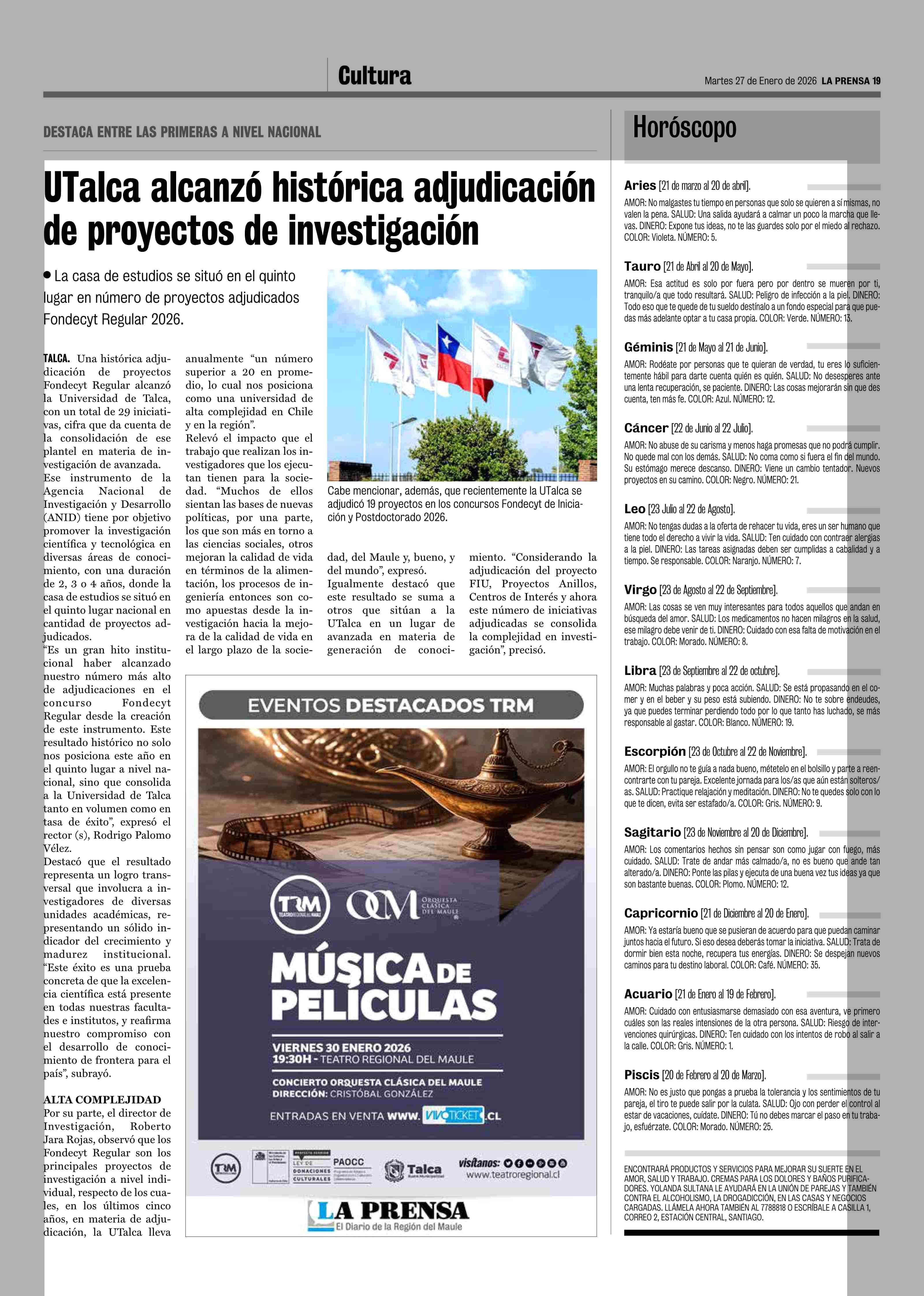 Fecha: 27-01-2026 Sector: Noticia general Región: Región del Maule