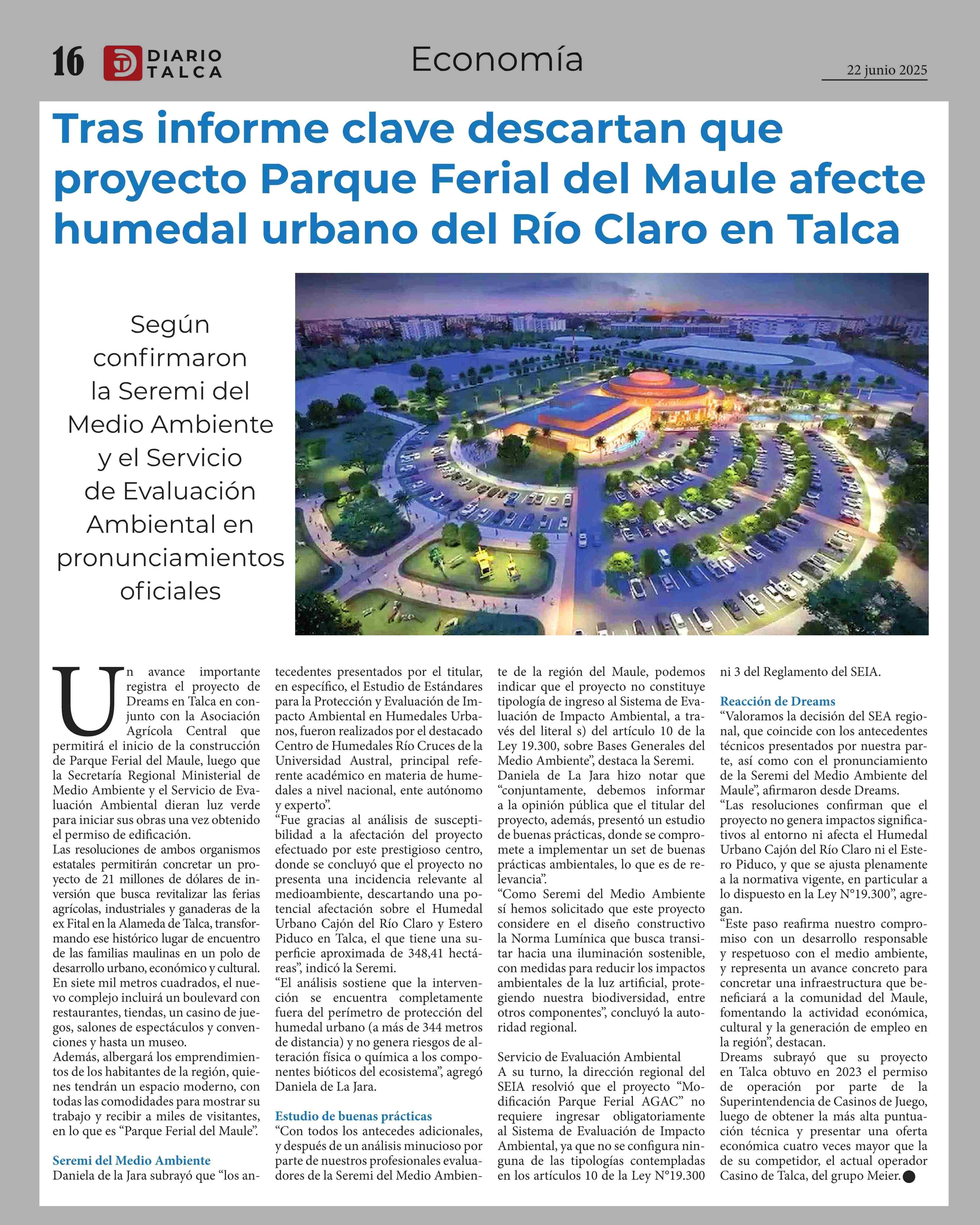 Tras informe clave descartan que proyecto Parque Ferial del Maule afecte humedal urbano del Río Claro en Talca 22-06-2025 Diario Talca |