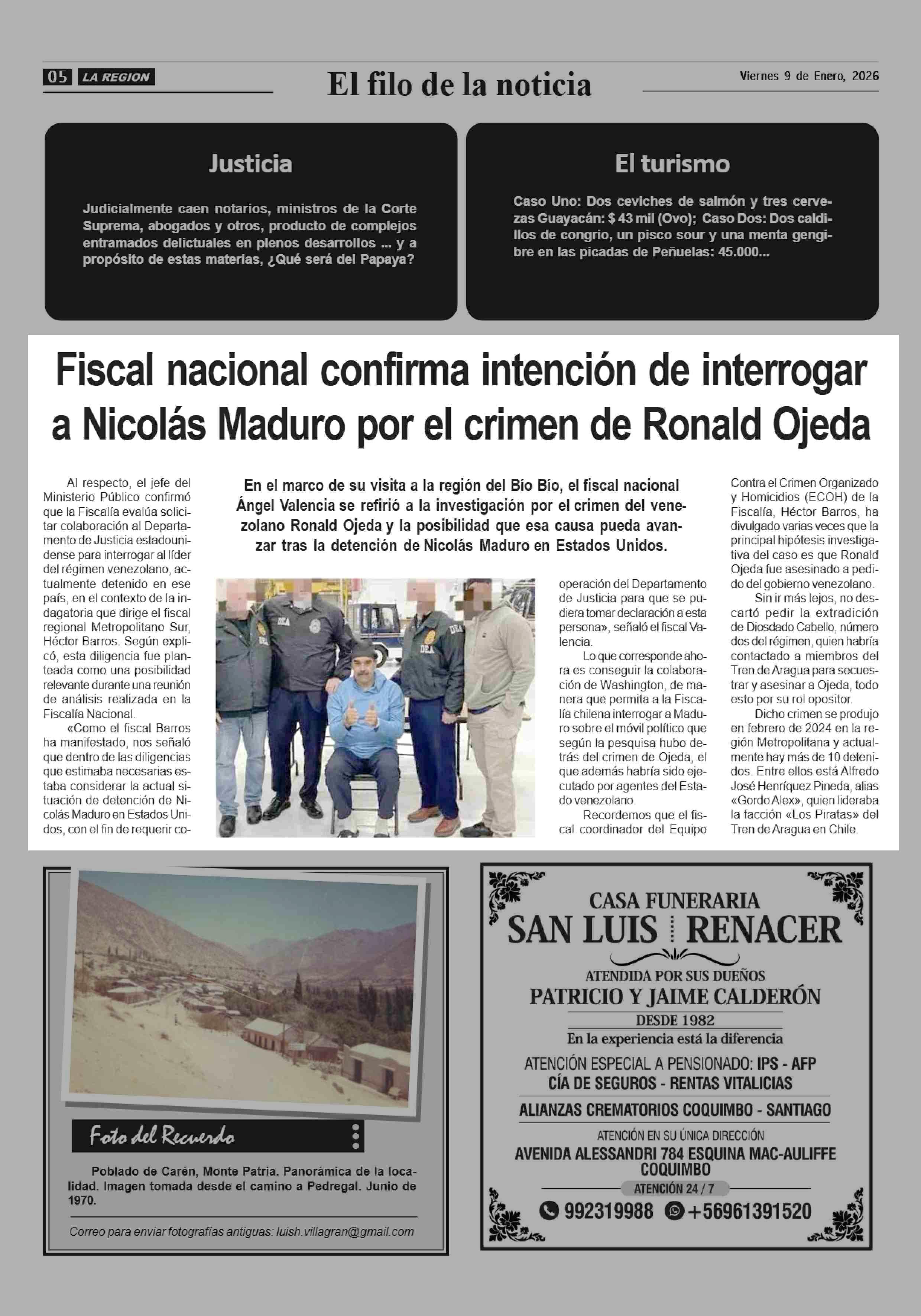 Fiscal nacional confirma intención de interrogar a Nicolás Maduro por el crimen de Ronald Ojeda 09-01-2026 Diario la Región |